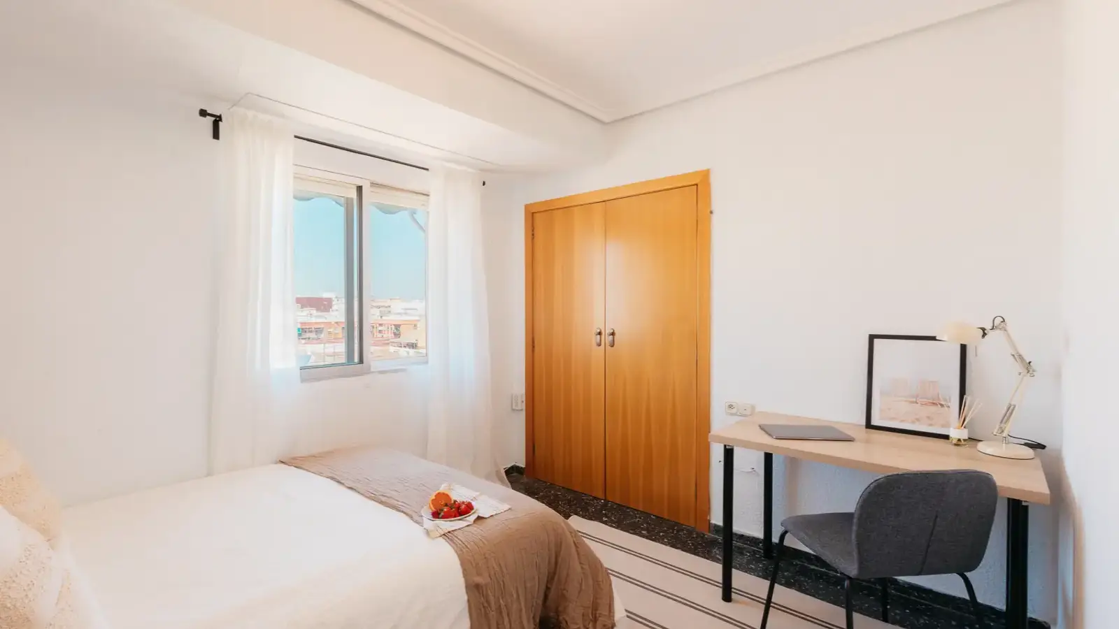 Dieses voll möblierte Zimmer in einer 5-Zimmer-WG in Mislata, Valencia, bietet einen Balkon mit Aussicht und ist mit einer individuell regulierbaren Klimaanlage ausgestattet. Die gut ausgestattete Küche verfügt über eine Gemeinschaftswaschmaschine, einen Backofen und einen Fernseher. Spotahome hat die Unterkunft persönlich geprüft und ihre Eignung für unsere Mieter sichergestellt. Einige Nebenkosten wie WLAN, Strom, Wasser und Gas sind in begrenztem Umfang enthalten.