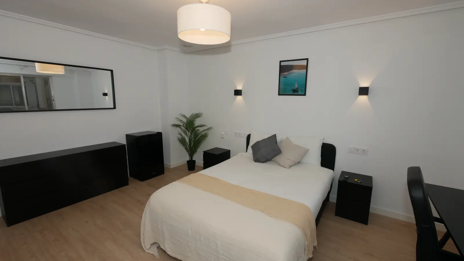 Dieses Zimmer in einer 5-Zimmer-WG in Cabanyal-Canyamelar bietet ein gemütliches Wohnerlebnis in Valencia. Die Unterkunft ist komplett möbliert, verfügt über eine voll ausgestattete Küche und einen Balkon oder eine Terrasse zum Entspannen. Für zusätzliche Sicherheit ist die Unterkunft von Spotahome geprüft. Strom, Wasser, Gas und WLAN sind im Mietpreis enthalten und sorgen für Komfort.