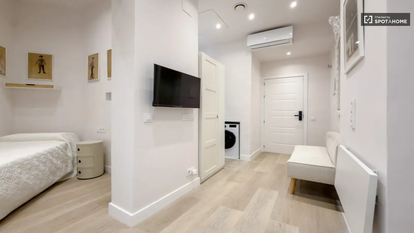Explore this cozy studio available for rent in Vila de Gràcia, Barcelona. The property features private washing machine and dryer, and individual units for air conditioning. This studio is an interior property, allowing for peaceful living. Spotahome has personally checked this listing to ensure accuracy and comfort.