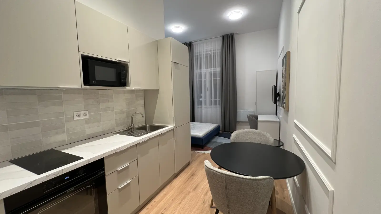 Cozy studio available for rent in Budapest. This furnished property includes an equipped kitchen with an oven, individual air conditioning units, and a common washing machine. Individuals of any gender are welcome, and both students and professionals may rent this home. Note, pets and smoking are not permitted in the property. Internet is available with a fixed cost paid to the landlord. Additionally, water is payable monthly to the landlord at a fixed rate and electricity upon invoice.