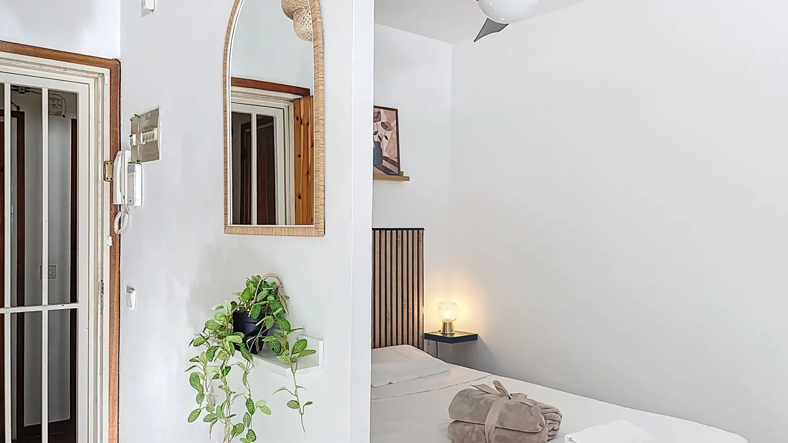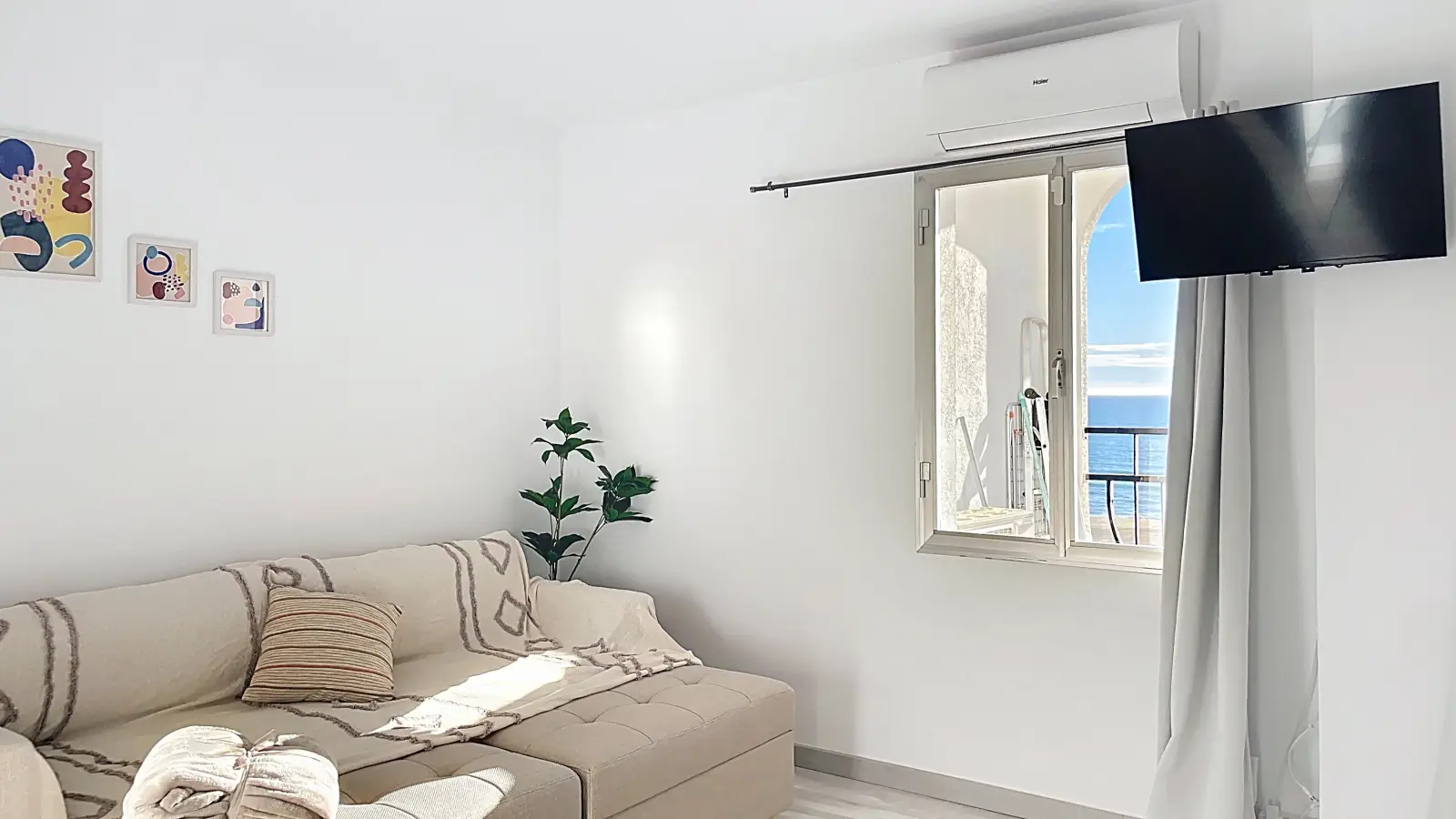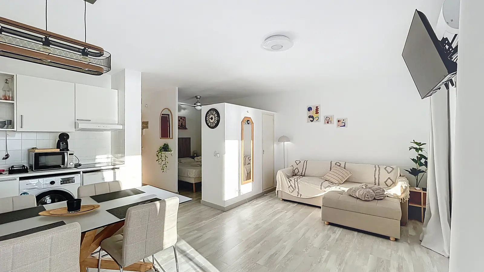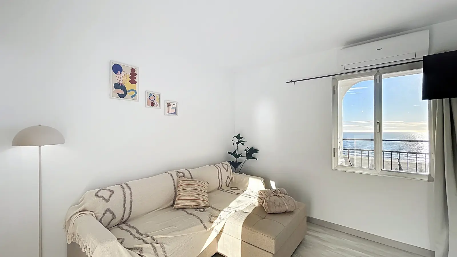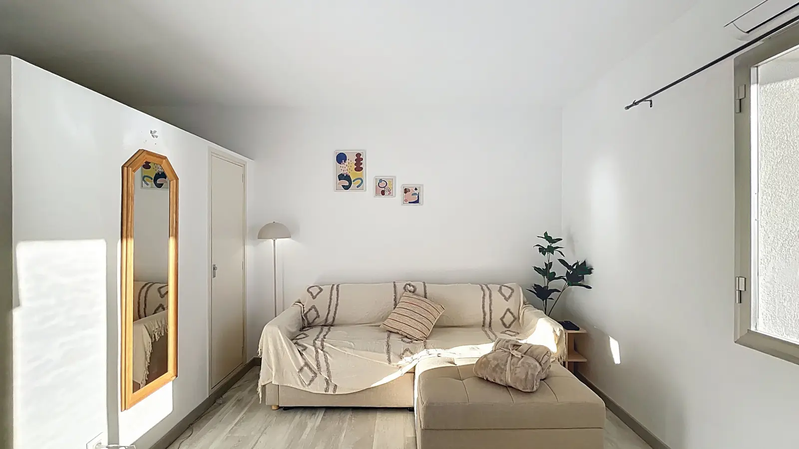 Furnished studio for rent in Castelló d'Empúries. This property features modern amenities, including an equipped kitchen and a private balcony. Air conditioning is provided through individual units, and all utilities (electricity, water, gas, and WiFi) are included in the rent. Please note, no washing machine or parking is available in the building. Landlords are vetted by Spotahome for trustworthy accommodation options.