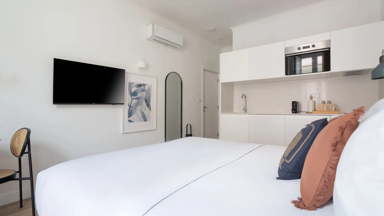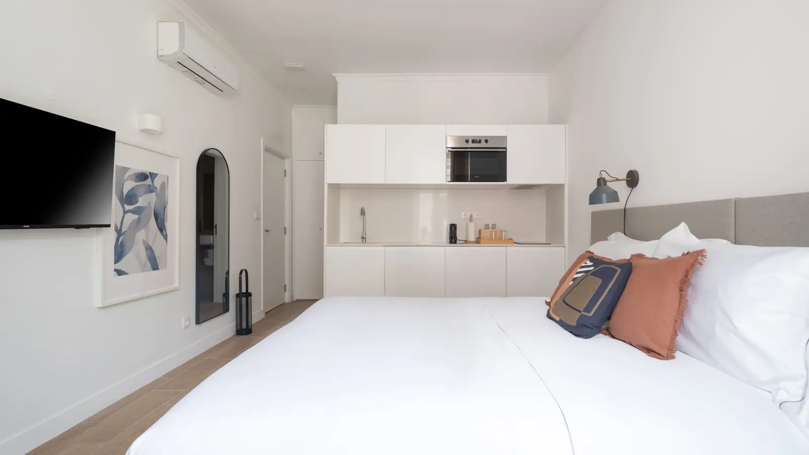 Discover this fully furnished studio apartment for rent in Lisbon, featuring individual air conditioning units for comfort and electric heating. The apartment is equipped with modern amenities including a dishwasher and oven, ensuring convenience at your fingertips. The kitchen is fully equipped. Bills for electricity, water, gas, and wifi are included in the rental price.