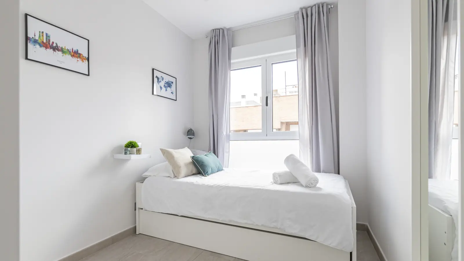 This 2-bedroom apartment in Prosperidad offers a comfortable living experience, featuring furnishings, an equipped kitchen, individual air-conditioning units for cooling and heating, and an electric water heating system. Spotahome ensures a reliable vetting process for all landlords.