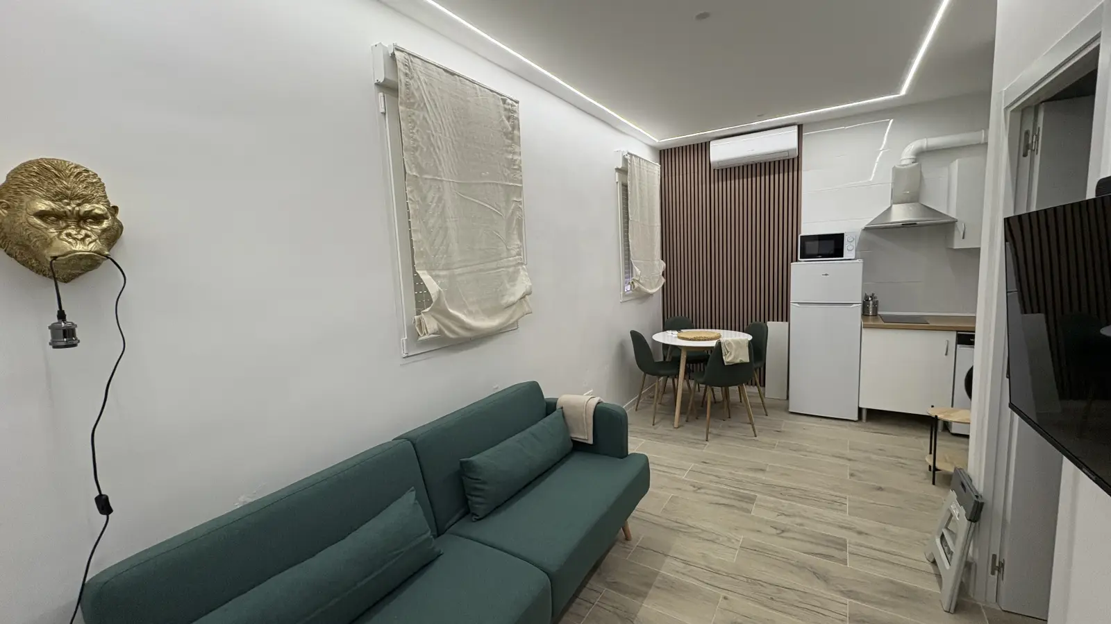 Step into comfort with this furnished 1-bedroom apartment located in the Numancia area of Madrid. This cozy living space includes modern conveniences such as a private washing machine, dryer, TV, and individual air conditioning units for optimal comfort. The apartment features an equipped kitchen, ensuring you can prepare meals with ease. All utility bills, including electricity, water, gas, and Wi-Fi, are included in the rent. Couples are welcome to apply, as are professionals and students of any gender. The apartment has been personally verified by Spotahome so you can book with confidence.