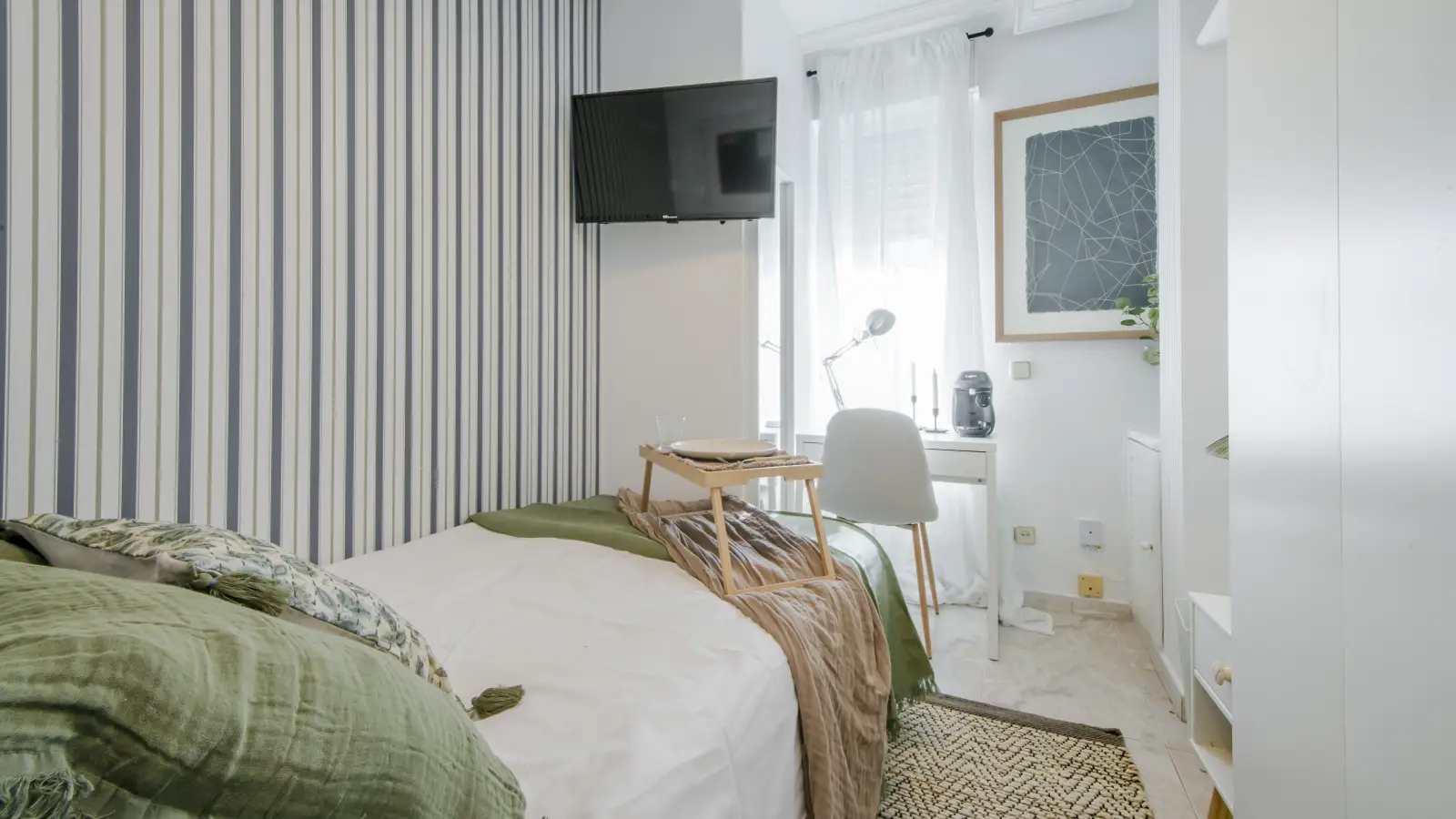 Discover this room in a spacious shared 5-bedroom apartment located in San Isidro. The apartment is fully furnished and features central heating, a well-equipped kitchen with a dishwasher and oven, and common washing facilities. Due to regulations, smoking and pets are not allowed. Bills, such as electricity, water, gas, and WiFi, are included within limits, and periodic cleaning is provided.