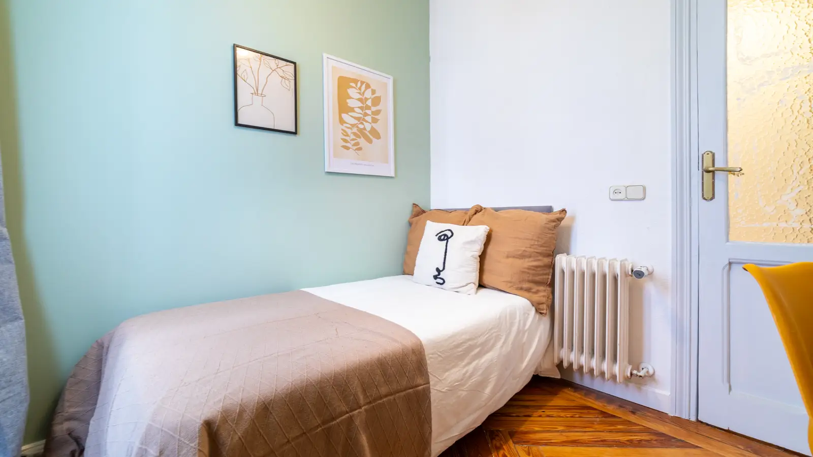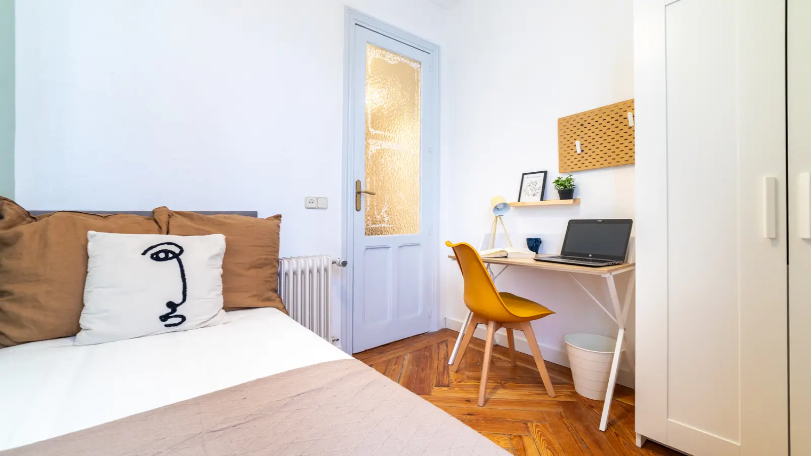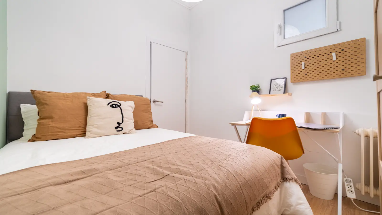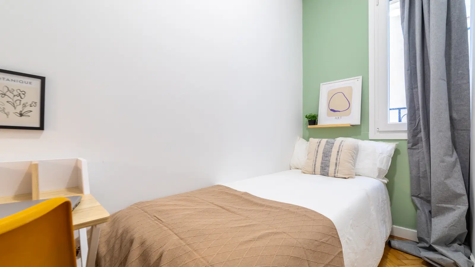 Welcome to this fully furnished room in a shared 7-bedroom apartment located in Niño Jesús, Madrid. The apartment features central heating and has an equipped kitchen for your convenience. Professionals and students are warmly welcomed, but please note that couples are not permitted. Smoking and pets are not allowed. Although the property has not been personally verified by Spotahome, all landlords undergo a thorough vetting process to ensure reliability and safety.