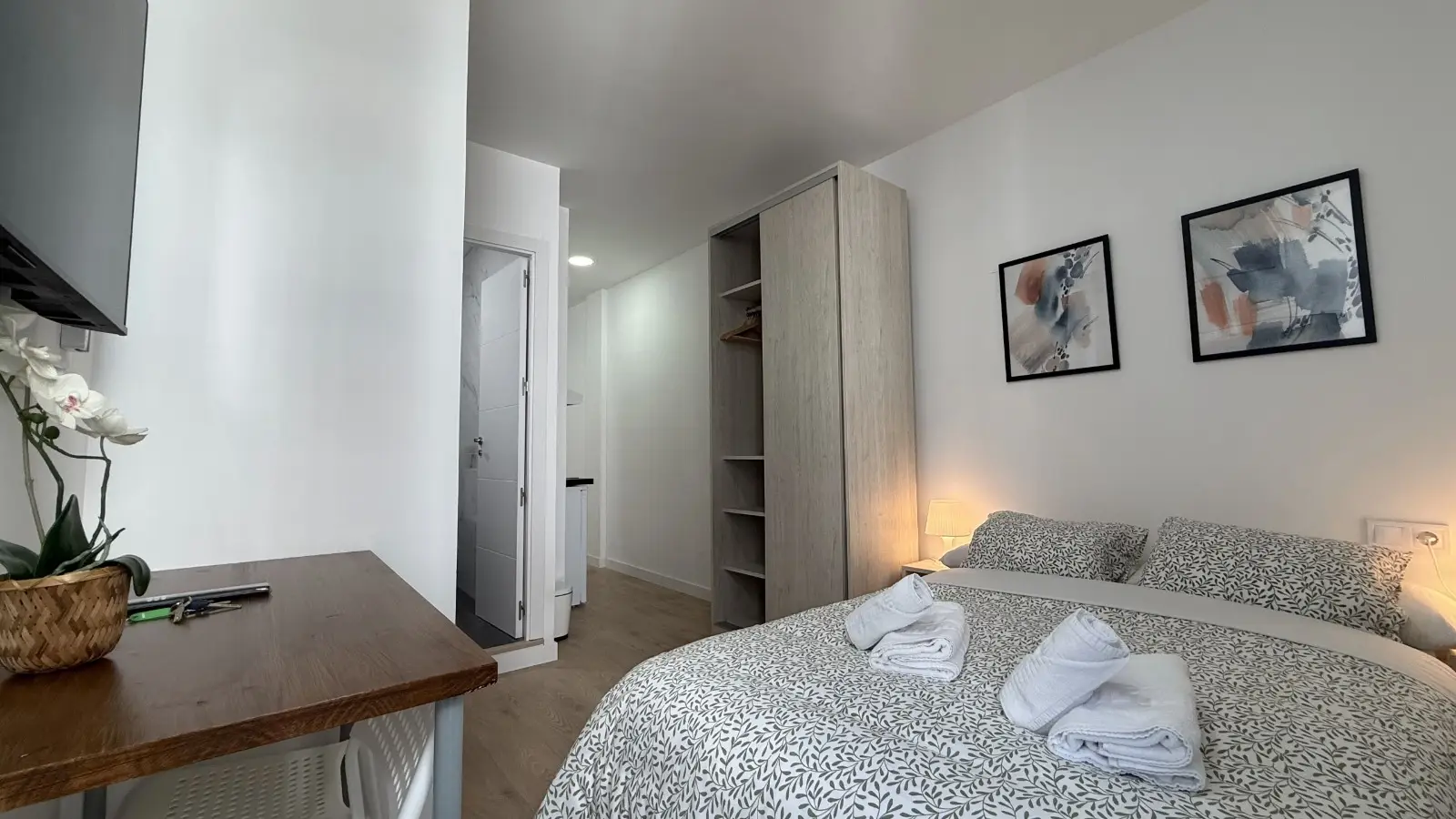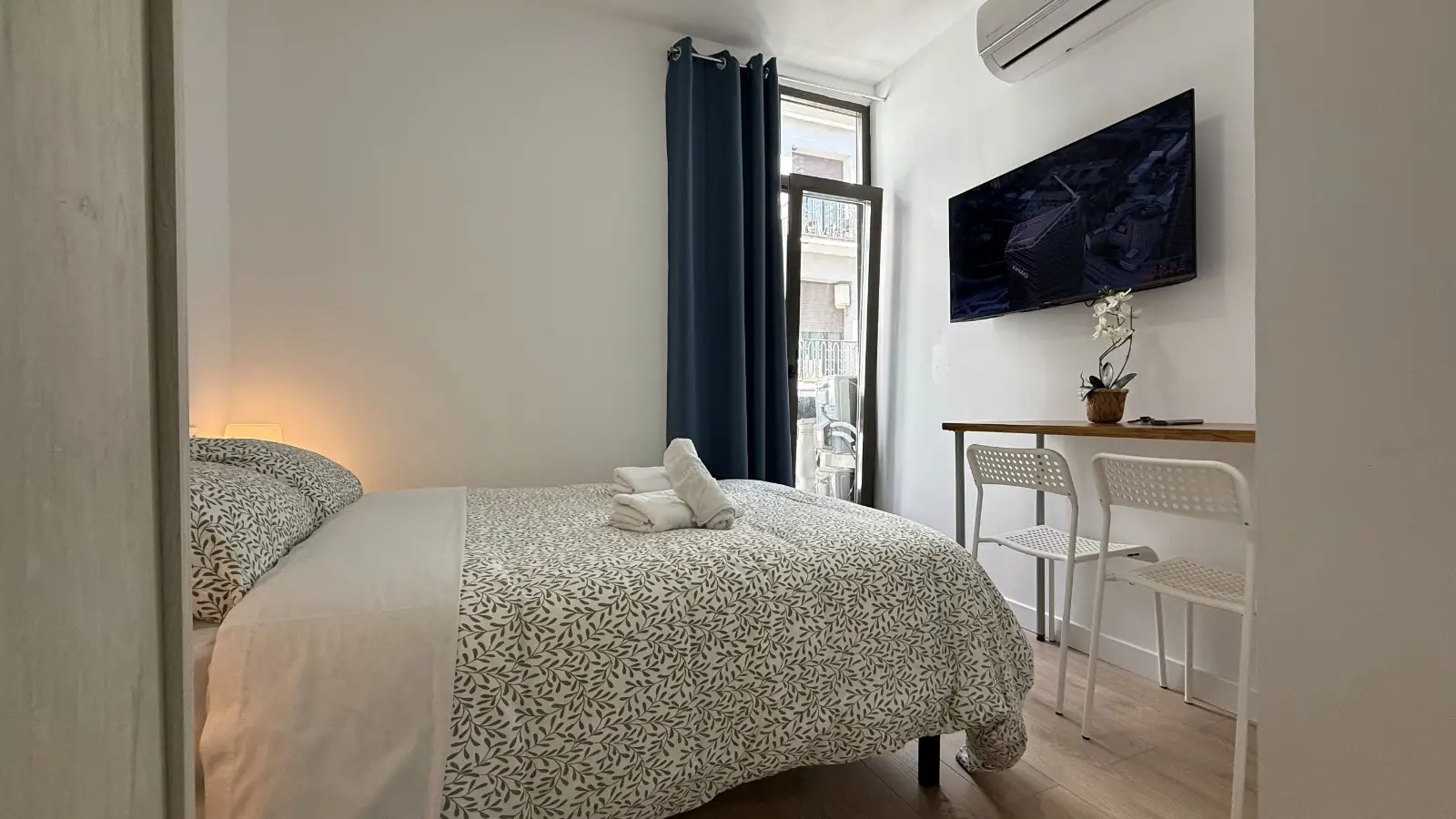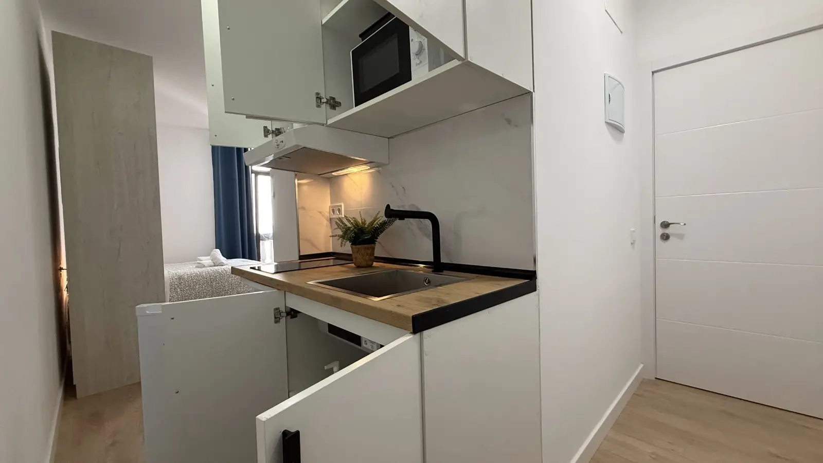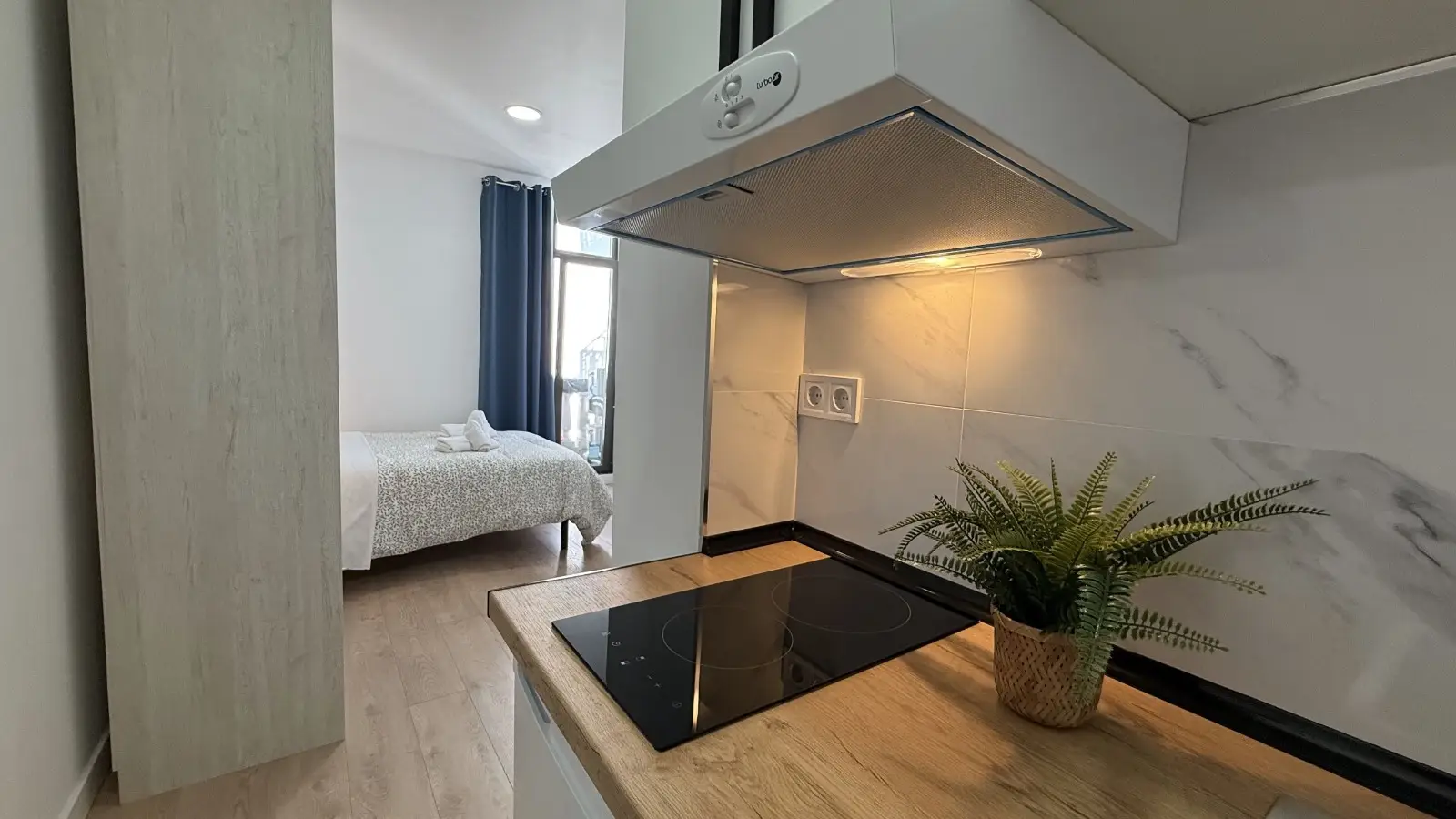 This furnished studio in Palacio, Madrid, is equipped with individual air conditioning units and has an elevator in the building. WiFi is included to keep you connected seamlessly. Discover modern living with Spotahome's reliable listings.