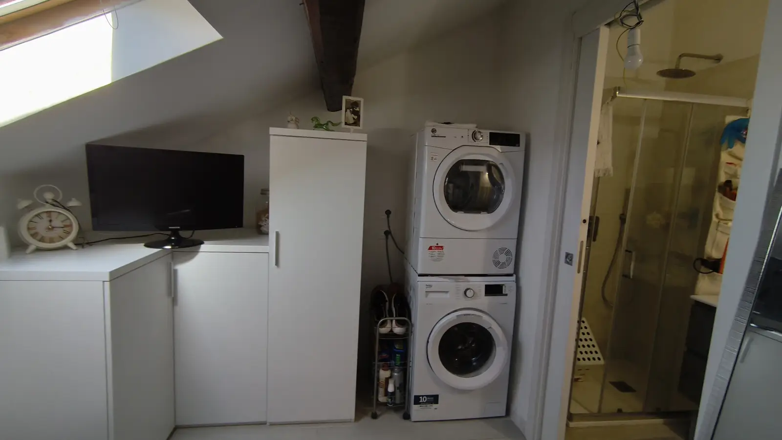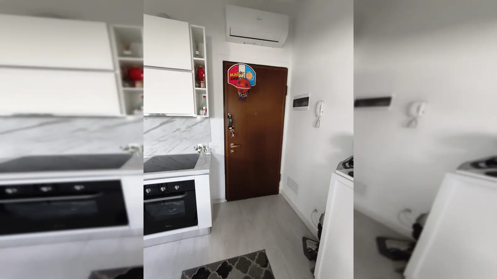 This furnished studio in Villapizzone, Milan, offers a comfortable living space featuring an equipped kitchen and individual air-conditioner units. The property welcomes pets and smoking and includes amenities such as a washing machine and an electric heating system.