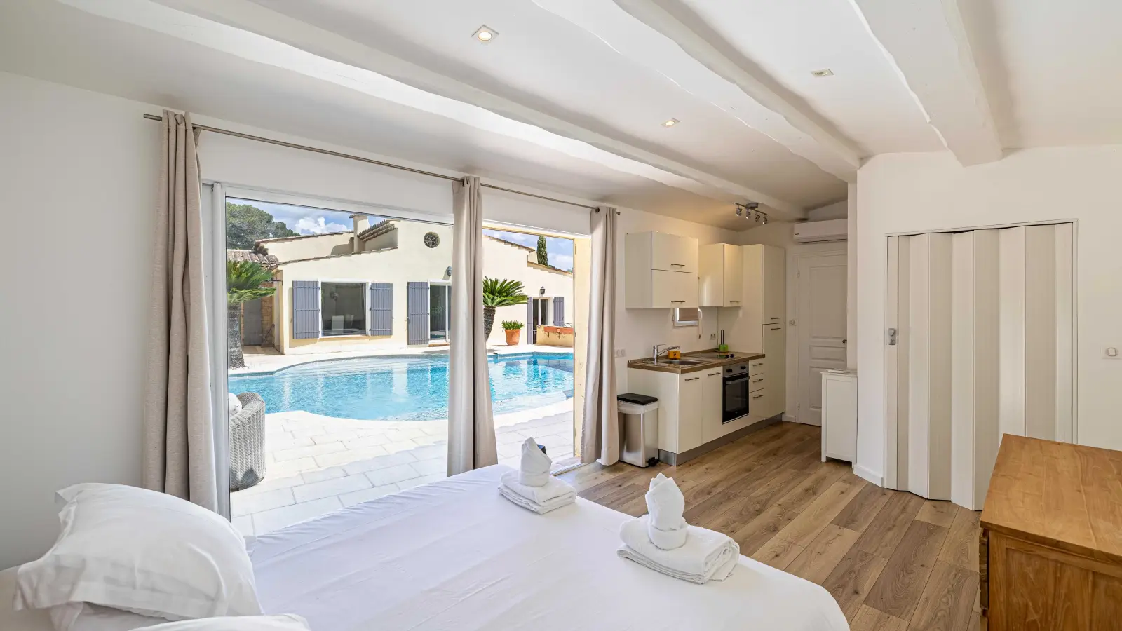 Cleaning fee between 100 € and 250 € , depending on the surface of the studio/ apartment. You pay it only once for all your stay.