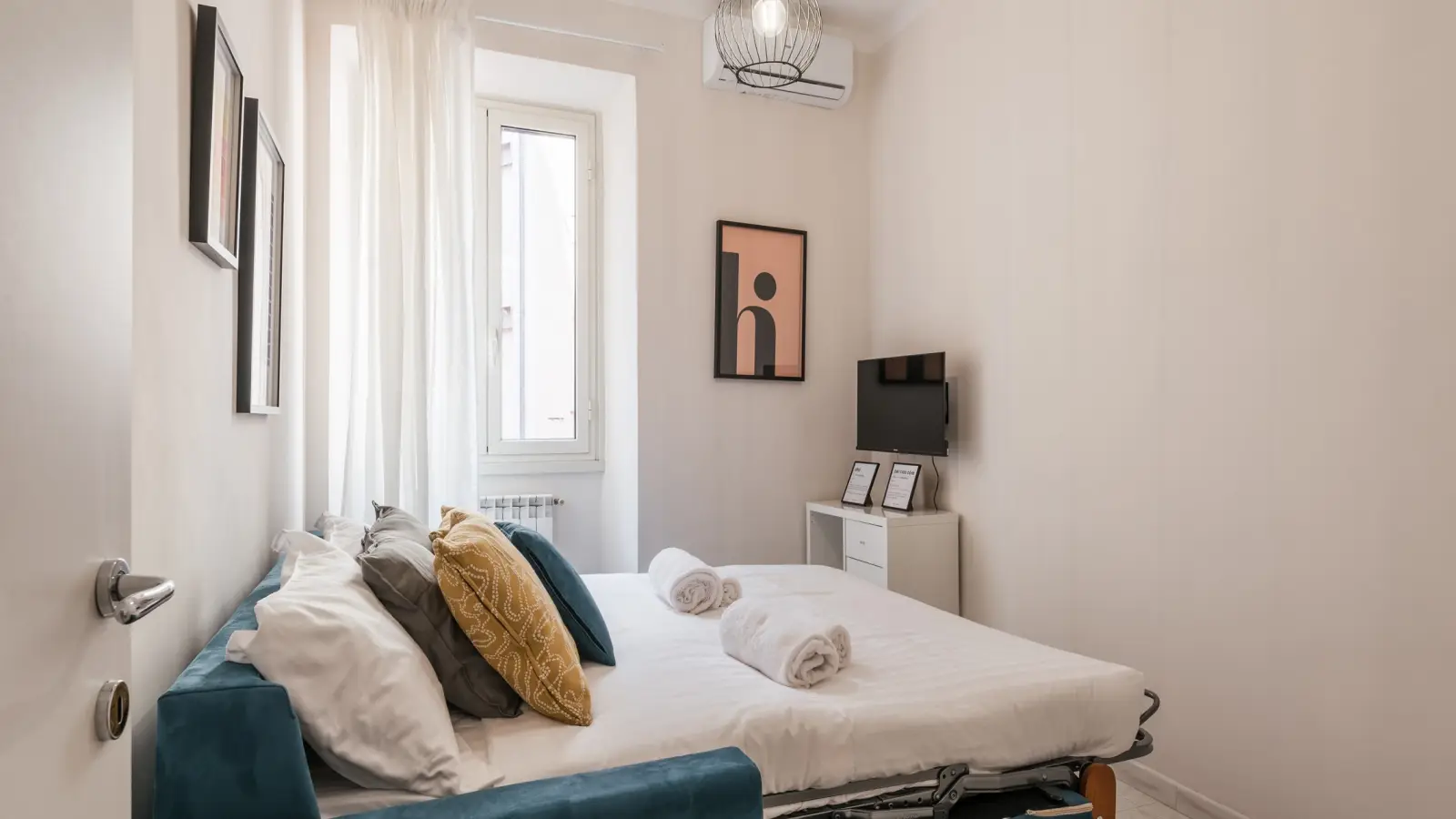 This charming 1-bedroom apartment for rent in Rione Esquilino, Rome, offers a fully furnished living space equipped with all essential amenities. Providing a private washing machine and dishwasher in the kitchen, along with a TV for entertainment, it's tailored to suit professionals, couples, and families. Central air conditioning and heating ensure comfort all year round, and all utility bills, including wifi, are included in the rent. Bed linen is likewise provided.