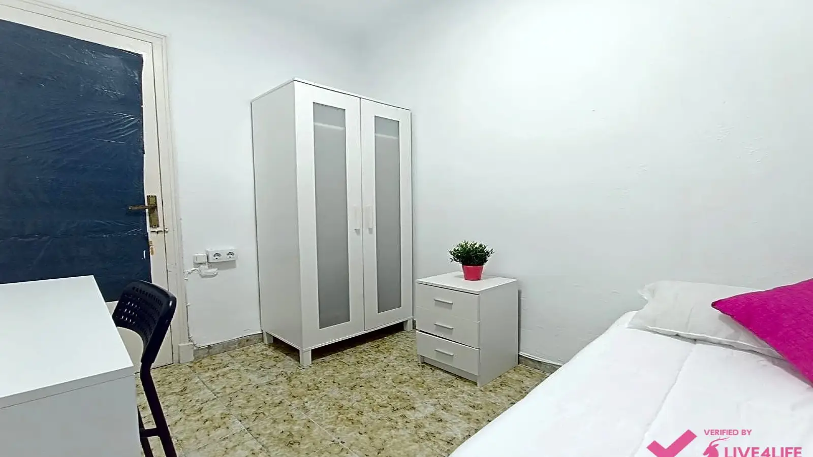 Habitación en un piso compartido de 4 habitaciones en Aiora, Valencia. El piso se entrega amueblado y cuenta con cocina equipada, horno y sistema de agua caliente eléctrica. No se permite fumar, ni se admiten mascotas, ni aparcar. El wifi y el agua están incluidos en el precio.