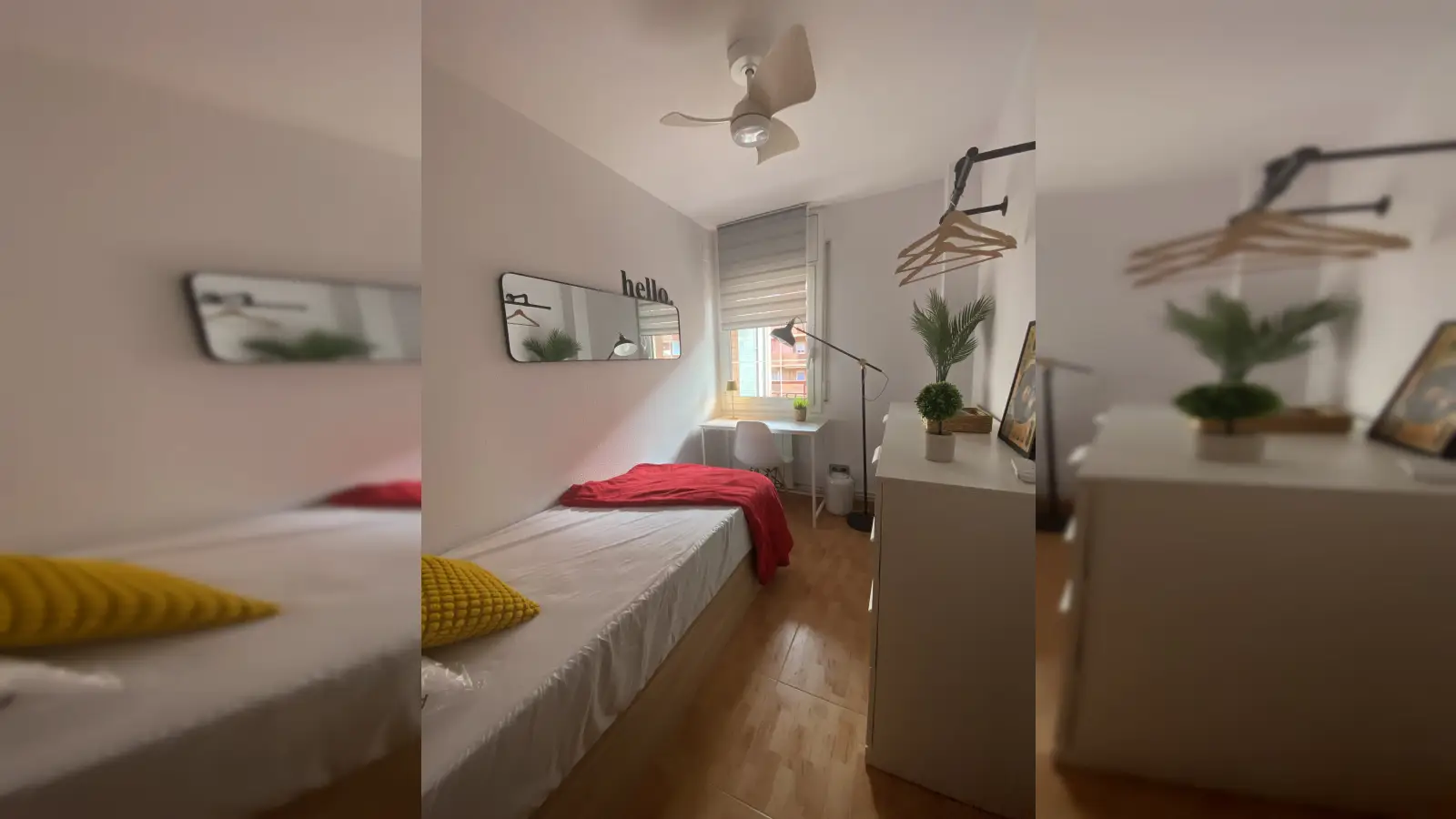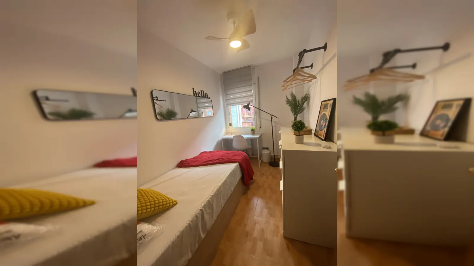 Cette chambre confortable est disponible à la location dans un appartement de 4 chambres en colocation situé à La Vall d'Hebron, à Barcelone. L'appartement est meublé et comprend notamment le chauffage au gaz naturel et la climatisation individuelle. Il est équipé d'un ascenseur pour un accès facile, d'un balcon offrant un espace extérieur, d'une cuisine bien équipée avec lave-vaisselle et four, ainsi que d'un lave-linge commun pour le linge. Il est interdit de fumer et les animaux de compagnie sont interdits dans l'appartement, tout comme les couples. Toutes les factures, y compris l'électricité, le gaz, l'eau et le Wi-Fi, sont incluses dans le prix de la location. Ce bien a été personnellement vérifié par Spotahome, garantissant ainsi sa qualité et sa fiabilité.