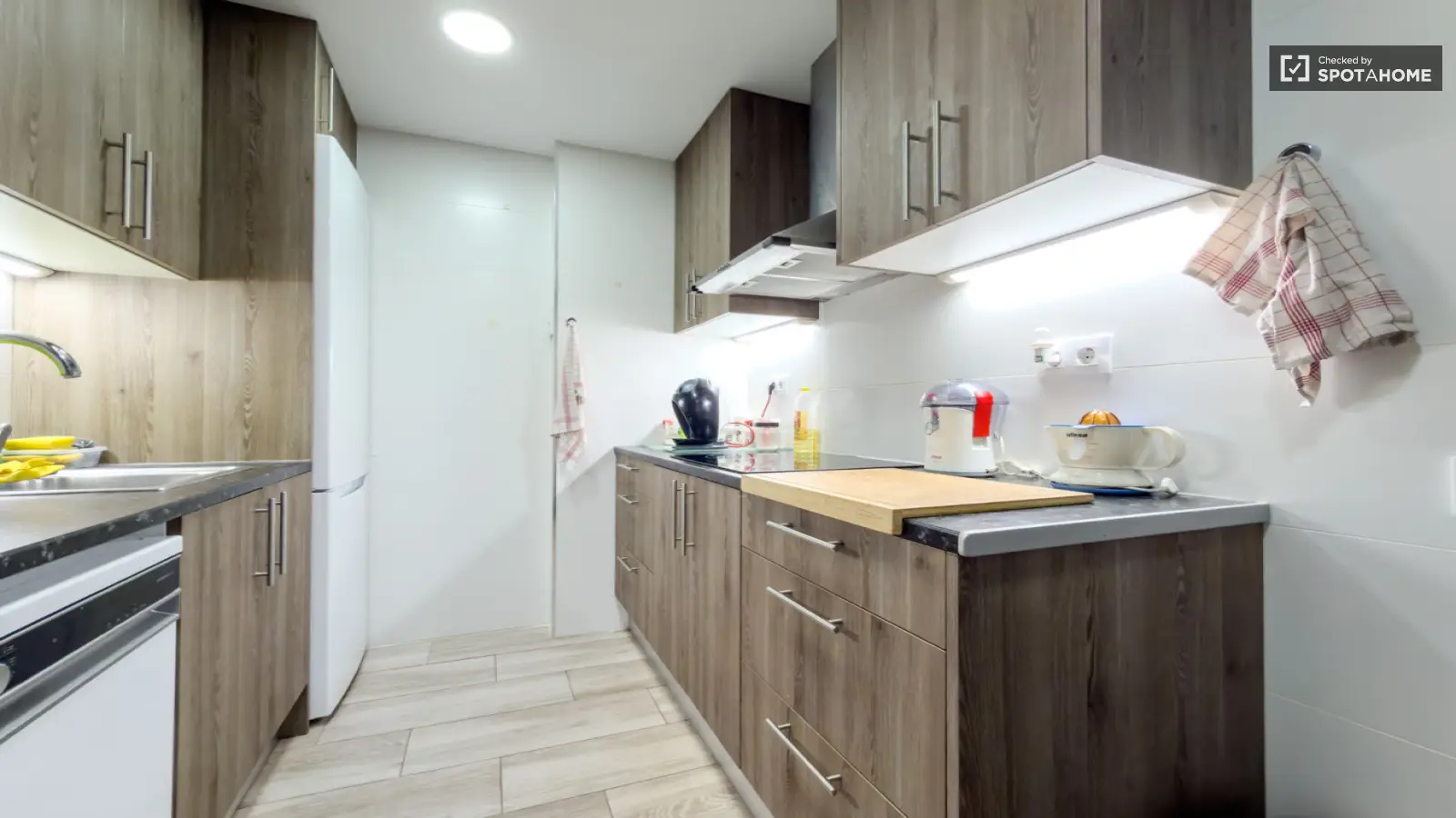 Il s'agit d'une chambre meublée dans un appartement partagé de 4 chambres à louer à La Marina de Port, Barcelone. L'appartement, situé à l'intérieur, comprend des équipements tels qu'un lave-linge et un sèche-linge privés, une cuisine entièrement équipée, un four et une télévision. Le logement a été personnellement inspecté par Spotahome.