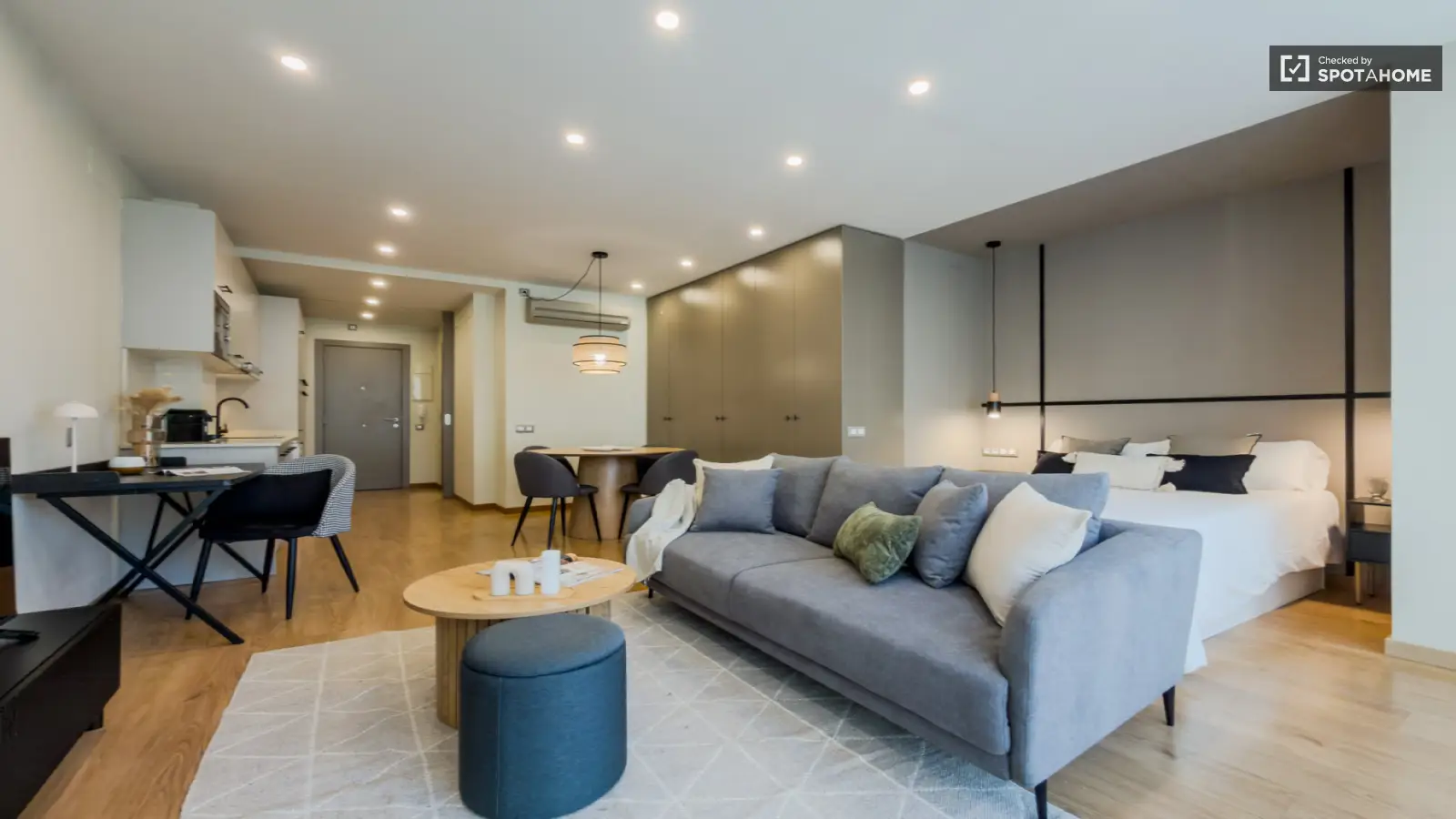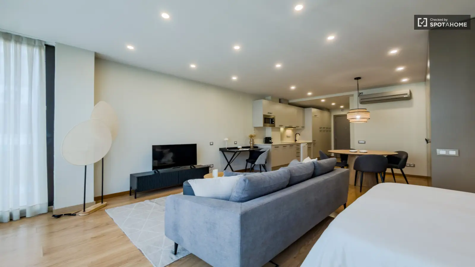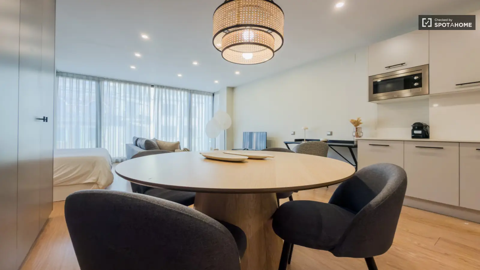 Ce studio entièrement meublé, situé dans le quartier de la Sagrada Familla à Barcelone, offre un cadre de vie moderne et pratique. Il est équipé de la climatisation centrale, d'un ascenseur, d'une piscine et d'un parking. La cuisine est entièrement équipée avec lave-vaisselle. Veuillez noter qu'aucun lave-linge ni sèche-linge n'est fourni. L'accès à Internet est inclus dans le loyer. Spotahome a personnellement vérifié ce logement afin de garantir son exactitude et sa qualité.