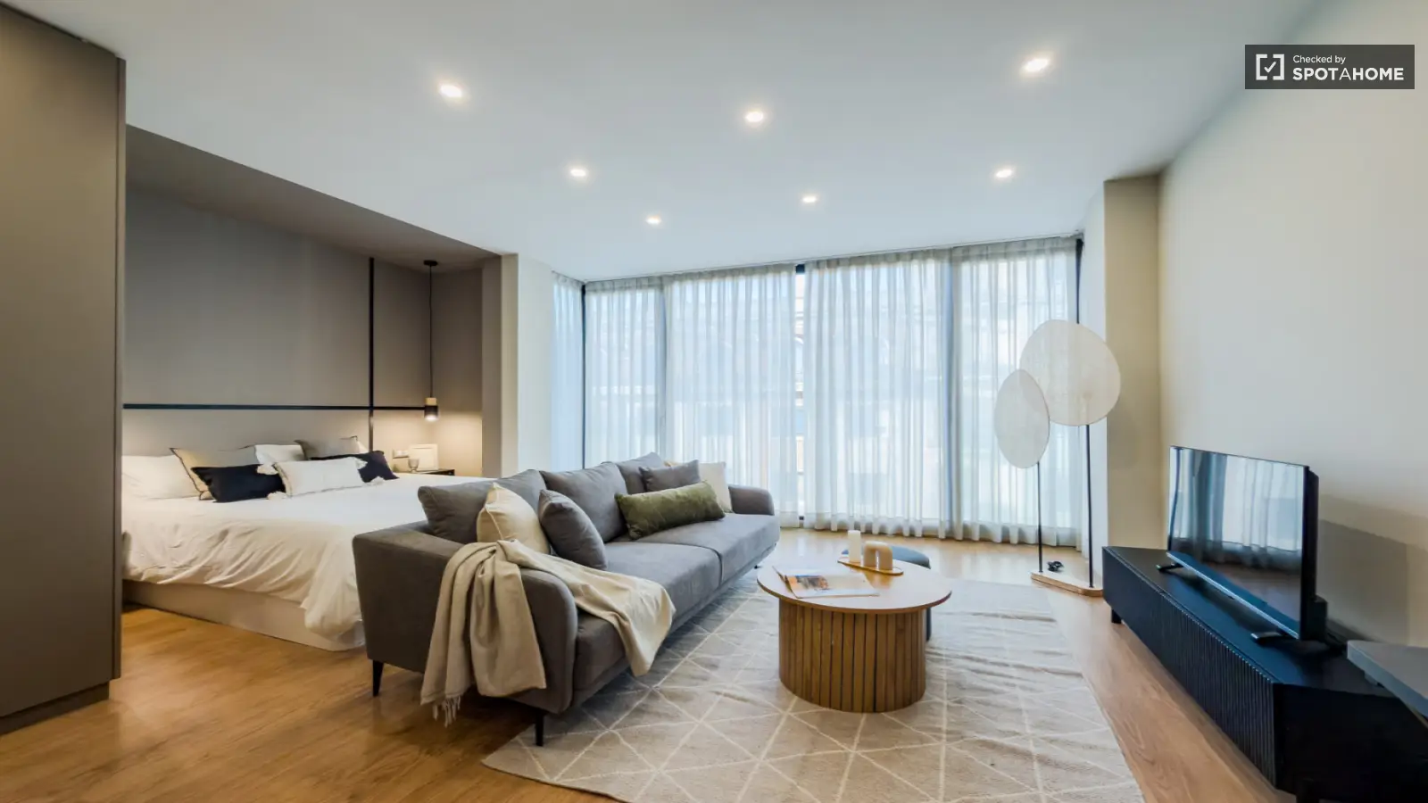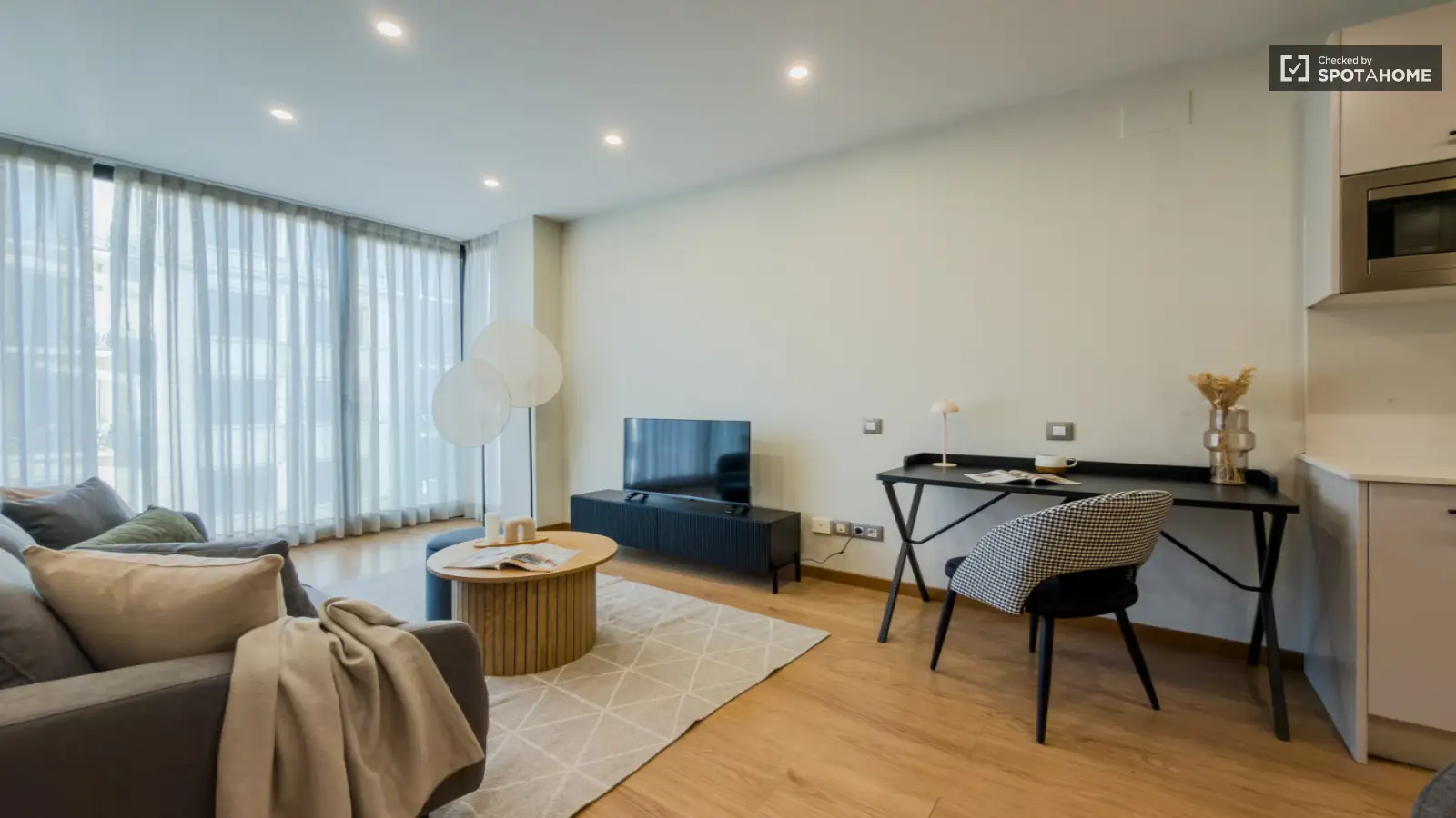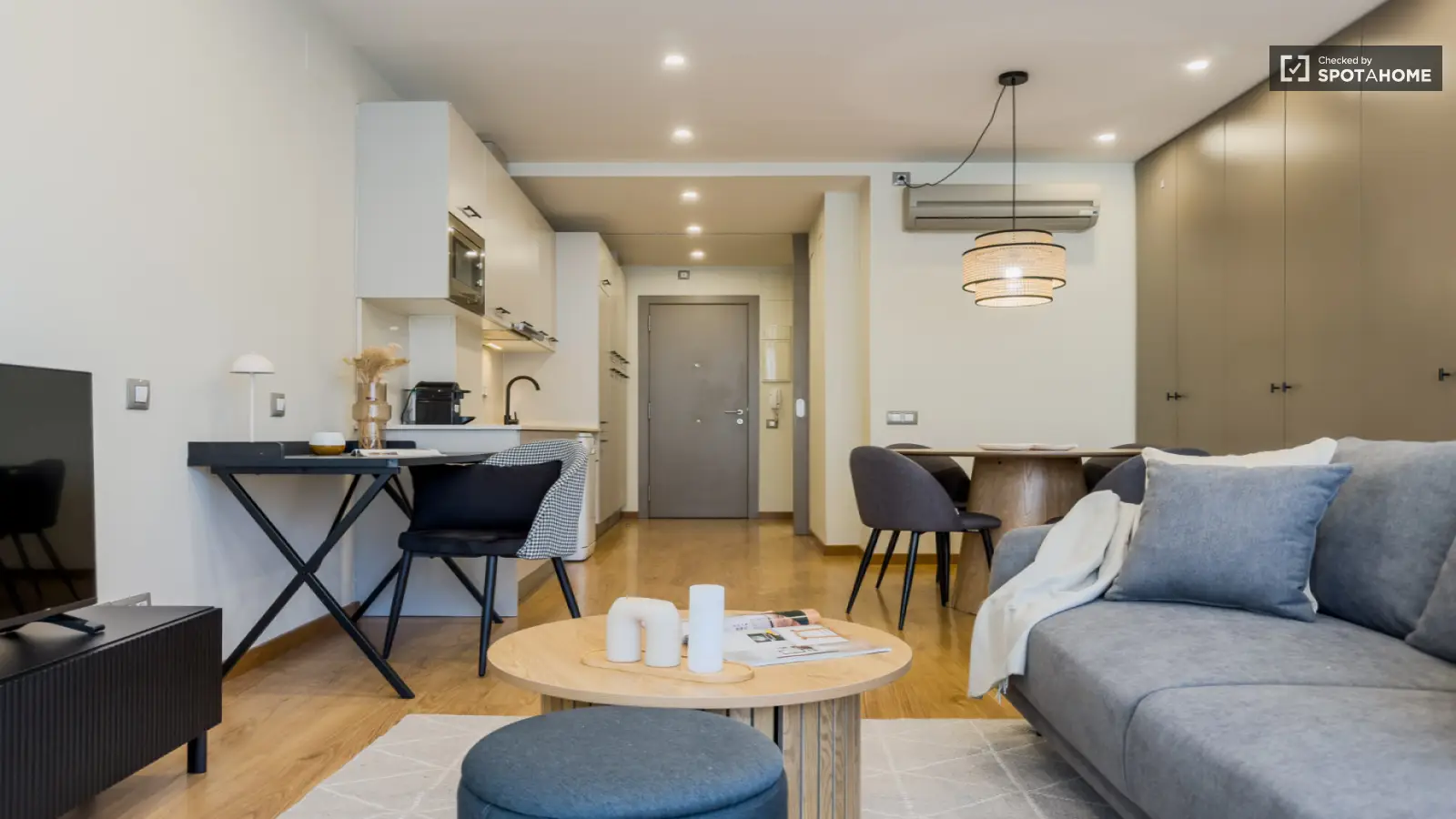 Ce studio entièrement meublé, situé dans le quartier de la Sagrada Familla à Barcelone, offre un cadre de vie moderne et pratique. Il est équipé de la climatisation centrale, d'un ascenseur, d'une piscine et d'un parking. La cuisine est entièrement équipée avec lave-vaisselle. Veuillez noter qu'aucun lave-linge ni sèche-linge n'est fourni. L'accès à Internet est inclus dans le loyer. Spotahome a personnellement vérifié ce logement afin de garantir son exactitude et sa qualité.