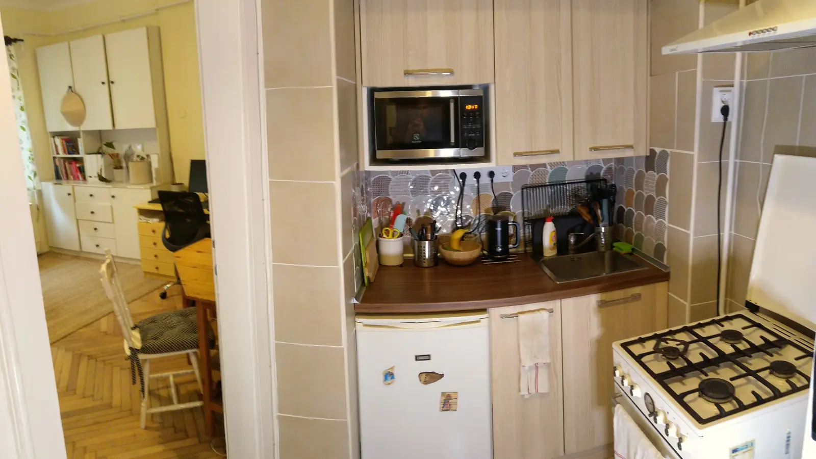 Ce studio meublé est disponible à la location à Budapest. Il comprend une cuisine entièrement équipée avec four, pour un confort optimal en cuisine. Veuillez noter qu'il n'y a pas d'accès internet, et que les animaux et la cigarette sont interdits.