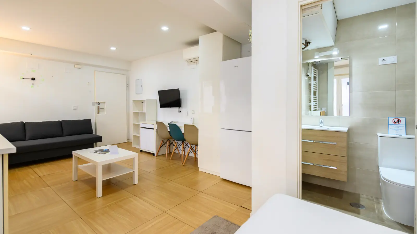 Ce studio moderne et entièrement meublé, situé à San Pascual, à Madrid, vous offre un séjour confortable. Il comprend tout le confort nécessaire, notamment une cuisine équipée et la climatisation individuelle. Veuillez noter que la cigarette et les animaux domestiques ne sont pas admis. Vérifié par Spotahome, ce logement vous garantit un espace sûr et fiable.