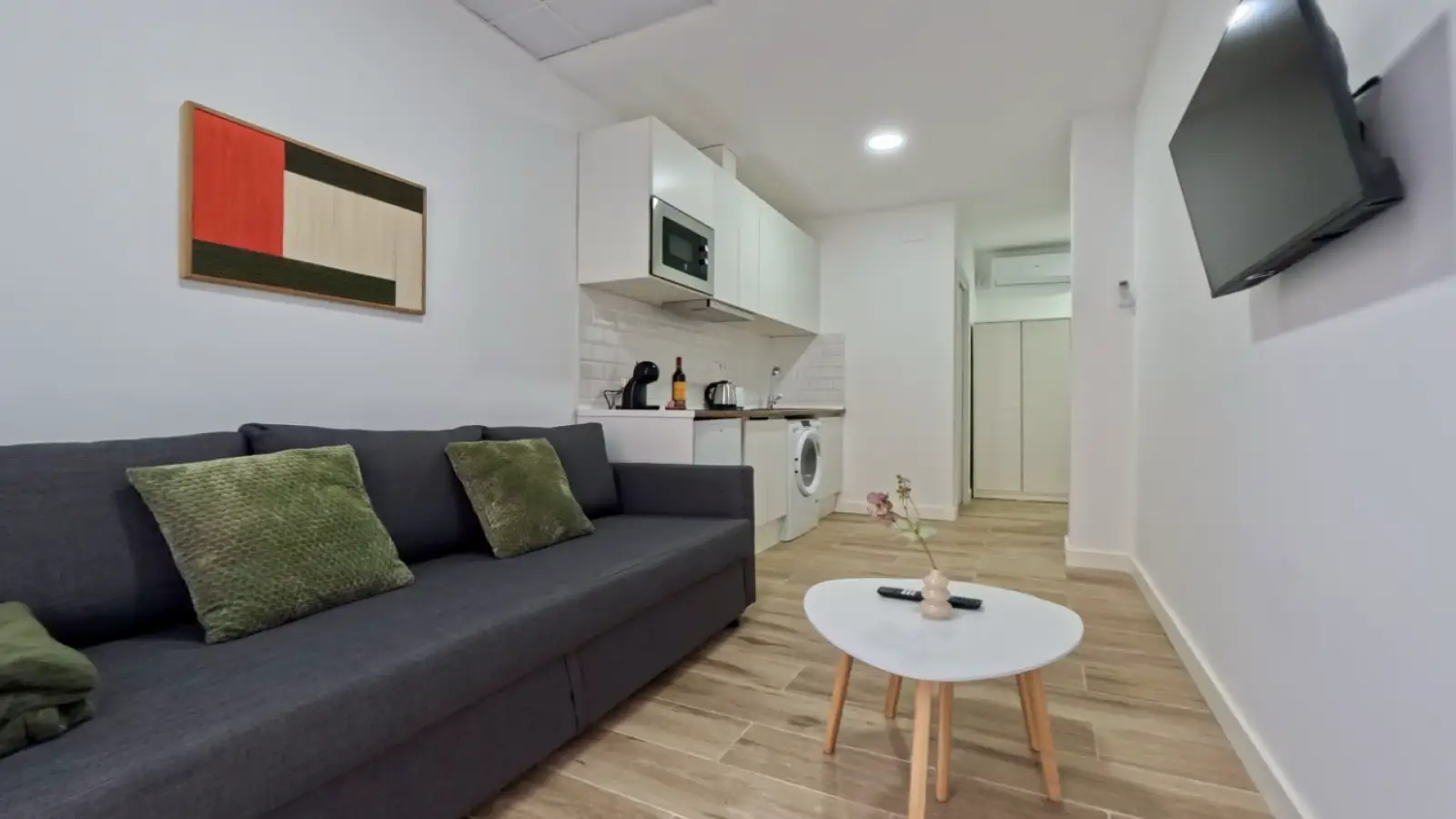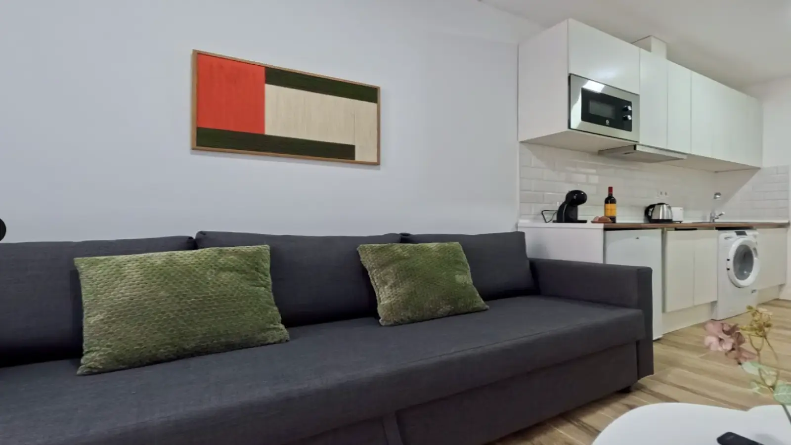 Vous recherchez un studio confortable et entièrement meublé à Madrid ? Ce studio intérieur situé dans le quartier de San Fermín est un excellent choix. Il offre de nombreux atouts, notamment la climatisation centrale, une cuisine entièrement équipée avec des appareils modernes tels qu'un lave-vaisselle et un four, un lave-linge privatif et une télévision. Les animaux de compagnie sont les bienvenus, ce qui en fait un logement idéal pour les amoureux des animaux. Ce logement a été personnellement vérifié par Spotahome, gage de sa qualité et de sa fiabilité.