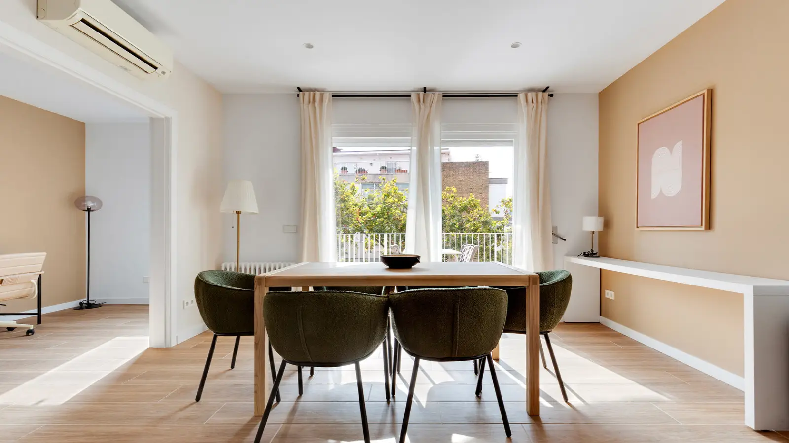 Questo appartamento arredato con 3 camere da letto a Les Tres Torres offre uno stile di vita moderno con cucina attrezzata, lavatrice e asciugatrice private, aria condizionata e un accogliente balcone. Tutte le utenze, tra cui elettricità, acqua, gas e Wi-Fi, sono incluse nell'affitto. Gli animali domestici non sono ammessi, garantendo un ambiente confortevole e sereno.