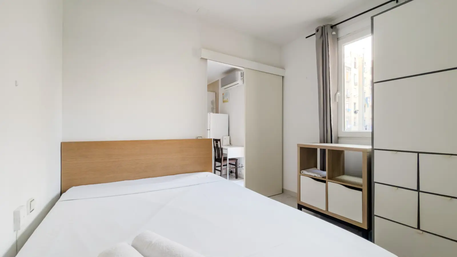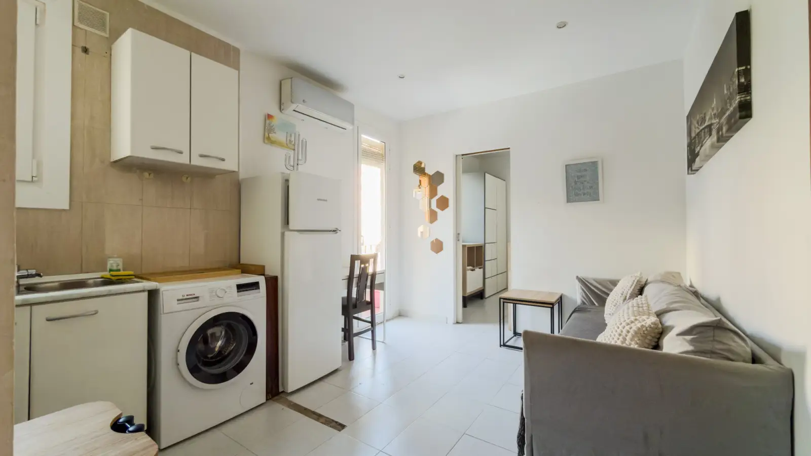Scopri questo appartamento arredato con 2 camere da letto in affitto nel vivace quartiere di El Poble Sec, a Barcellona. L'appartamento dispone di cucina attrezzata, aria condizionata autonoma e balcone o terrazza. Si prega di notare che non sono disponibili lavatrice o lavastoviglie.