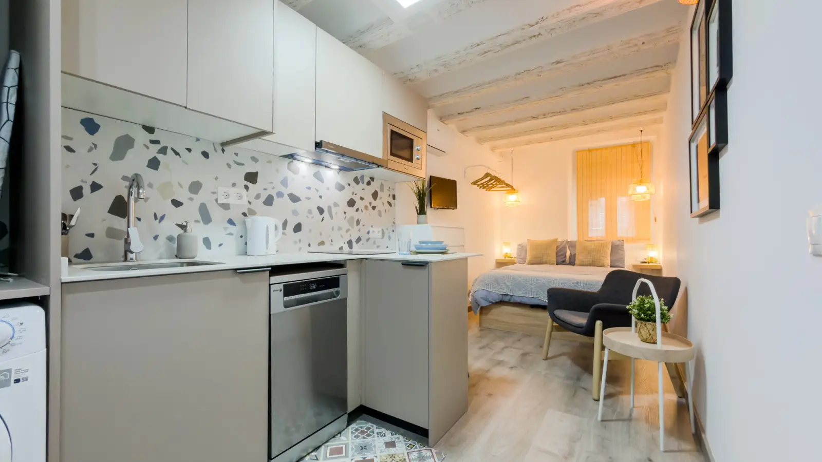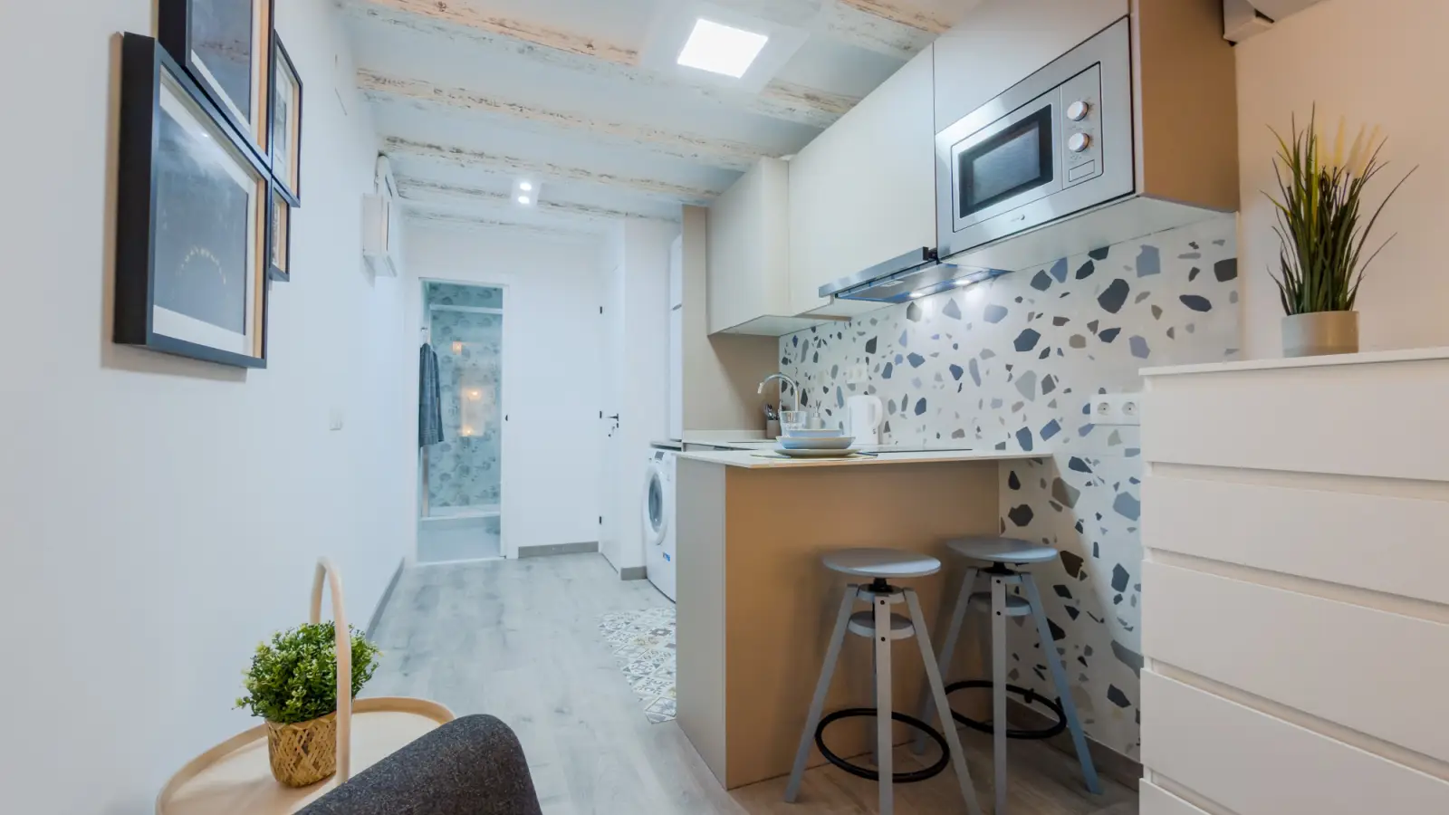 Questo monolocale è disponibile per l'affitto nel vivace quartiere di El Raval, a Barcellona. Dotato di aria condizionata, riscaldamento elettrico e Wi-Fi incluso, questo appartamento arredato offre comfort e praticità. La cucina è completamente attrezzata con elettrodomestici essenziali, tra cui asciugatrice e lavastoviglie, per una vita senza problemi. Non è consentito fumare e portare animali domestici nella proprietà. Spotahome garantisce che tutti i proprietari siano sottoposti a un accurato processo di verifica.