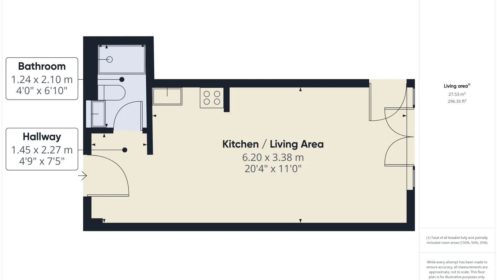 Mieszkanie typu studio · 1 łazienka · 28m2