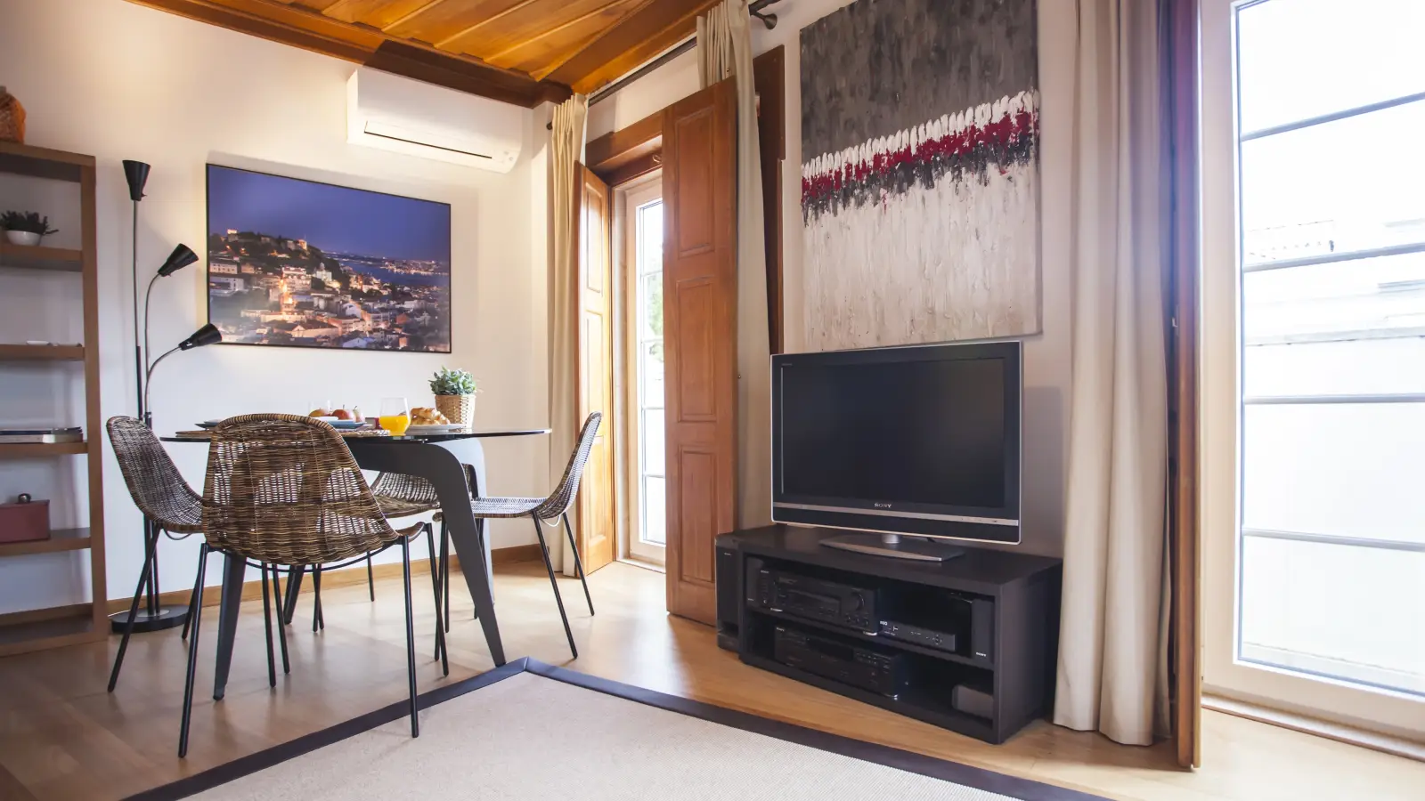 To przytulne studio, zlokalizowane w Lizbonie, oferuje szereg udogodnień zapewniających komfort. W apartamencie znajdują się indywidualne klimatyzatory z regulacją temperatury oraz zintegrowany z nimi system ogrzewania. Studio jest gustownie urządzone i dysponuje wyposażoną kuchnią ze zmywarką, piekarnikiem oraz wspólną pralką. Palenie i zwierzęta są dozwolone, ale obowiązują ograniczenia. Dodatkowo, wszystkie rachunki są wliczone w cenę.