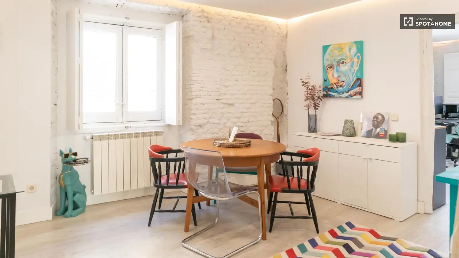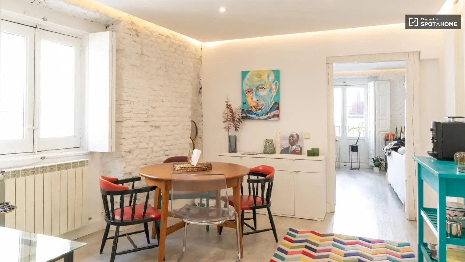 Ten w pełni umeblowany apartament w dzielnicy Justicia w Madrycie to fantastyczny wybór dla osób poszukujących komfortu i udogodnień. Nieruchomość oferuje prywatną pralkę, piekarnik, telewizor, indywidualne klimatyzatory oraz w pełni wyposażoną kuchnię. Apartament oferuje również przestronny układ i balkon, idealny na okazjonalny relaks. Mile widziane są pary i zwierzęta, a palenie jest dozwolone. Dodatkowo, wszystkie niezbędne opłaty, w tym prąd, woda, gaz i Wi-Fi, są wliczone w cenę. Nieruchomość została osobiście sprawdzona przez Spotahome.