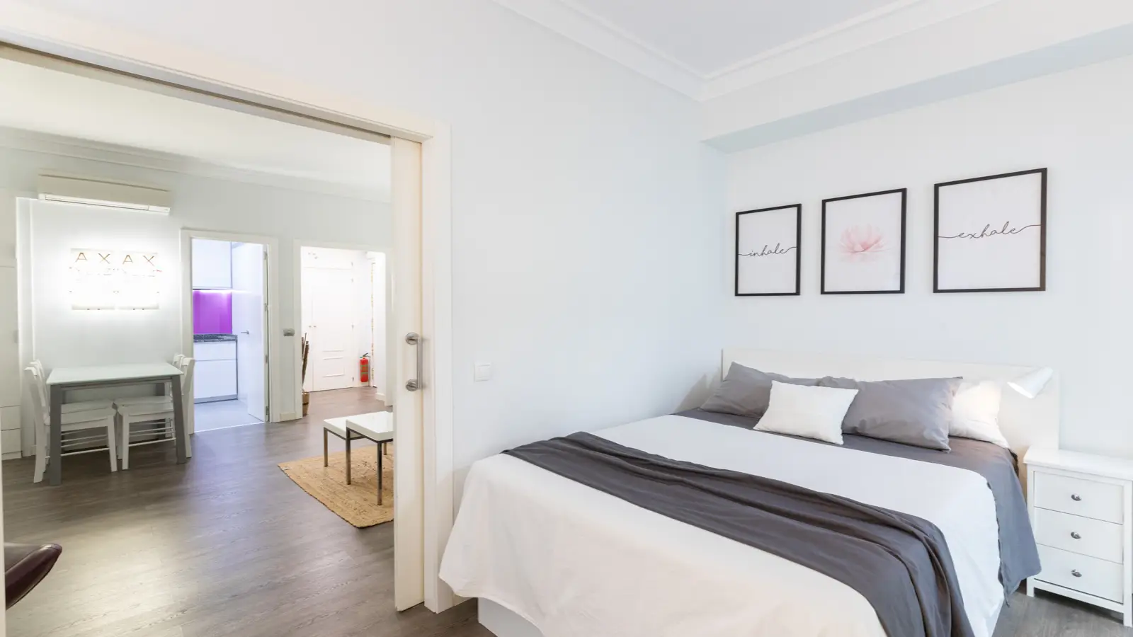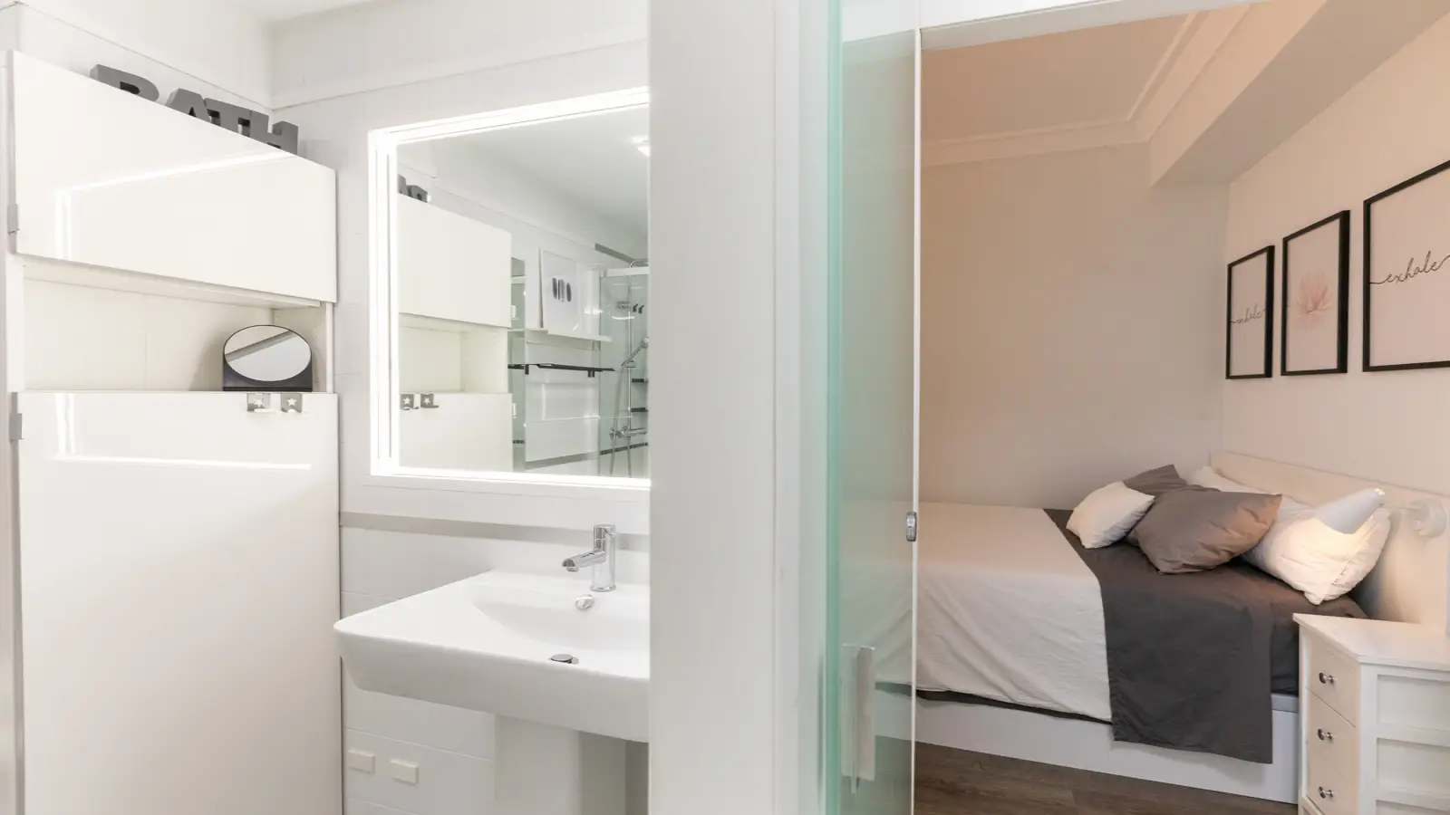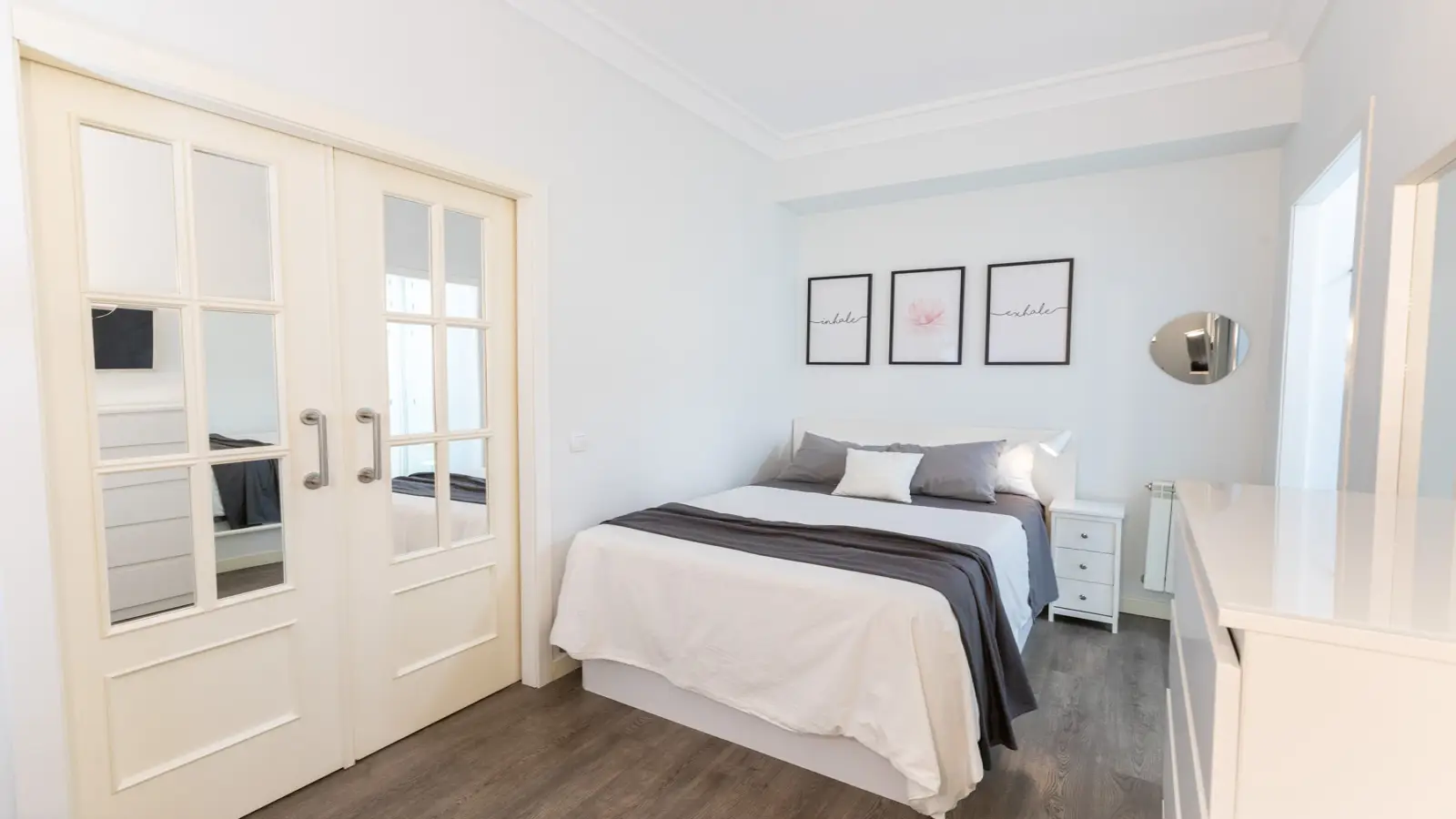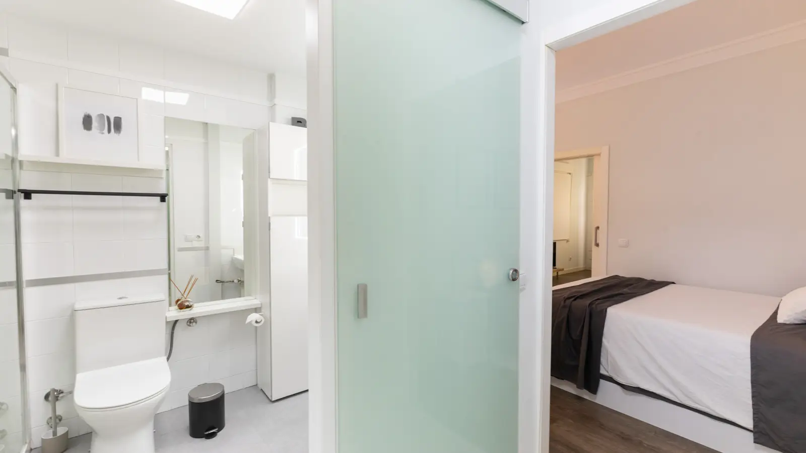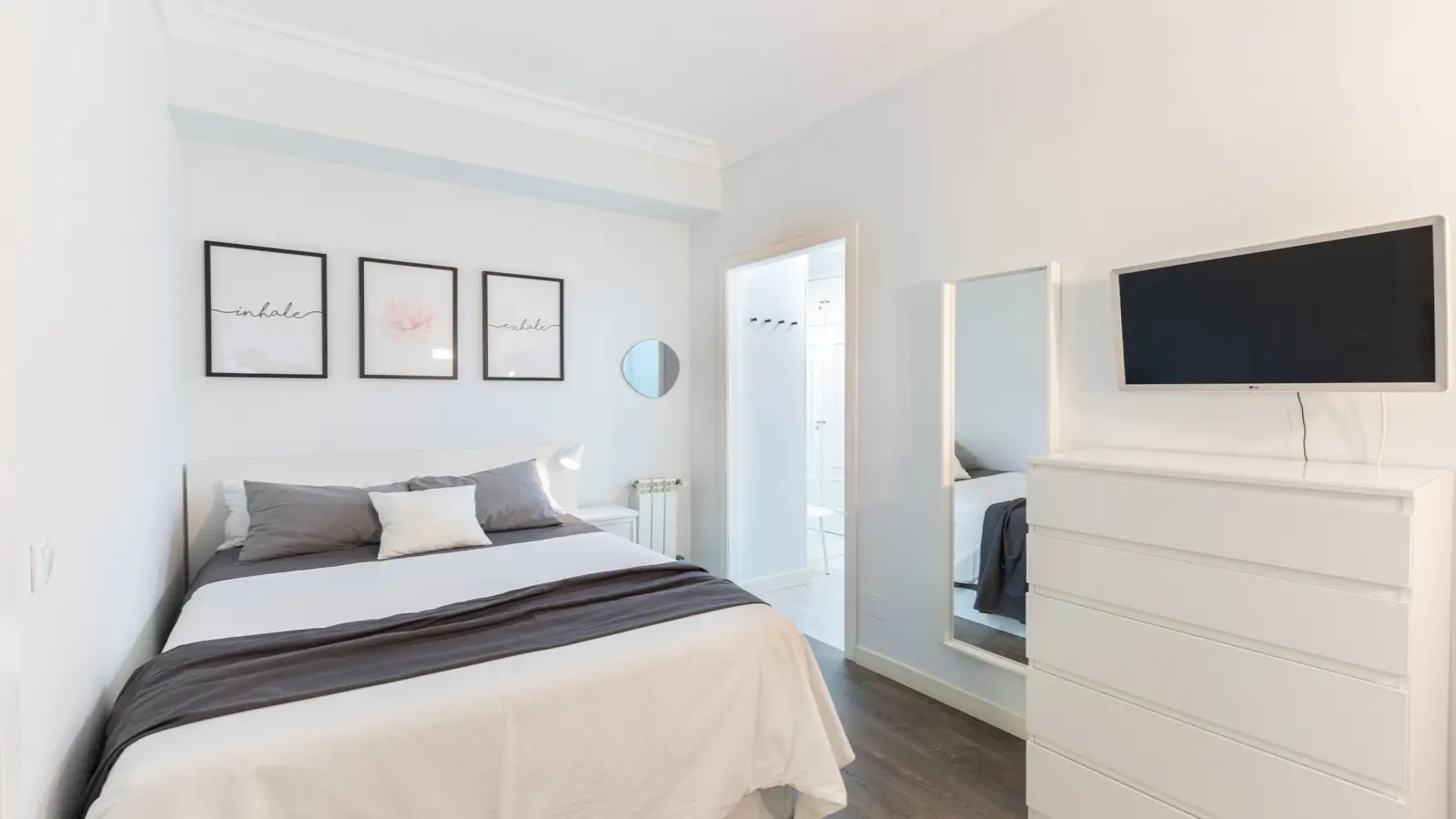 Apartament posiada przestronną sypialnię z łazienką z podwójnym łóżkiem oraz łazienkę z prysznicem, zaprojektowaną tak, aby zapewnić maksymalną prywatność i komfort. Posiada również zintegrowaną garderobę, która pozwoli utrzymać porządek.