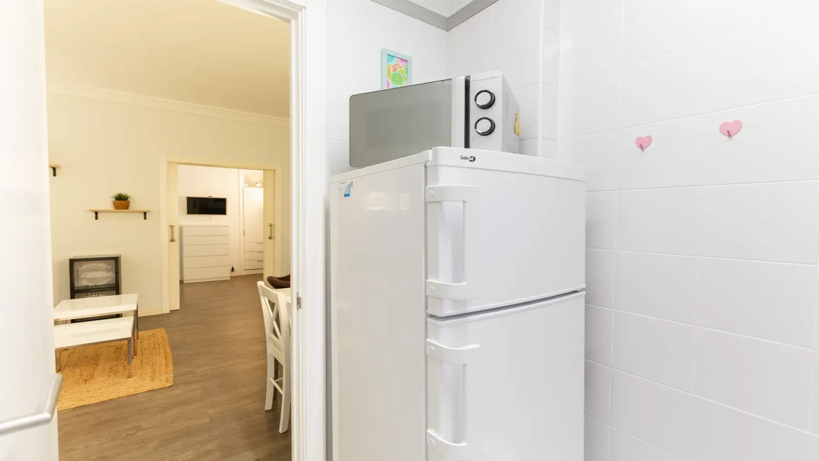 Kuchnia jest niezależna i wyposażona we wszystko, czego potrzebujesz do codziennego użytku: płytę ceramiczną, lodówkę, zmywarkę, kuchenkę mikrofalową, ekspres do kawy, toster i przybory kuchenne. Idealna do przygotowywania ulubionych potraw w pełnym komforcie.