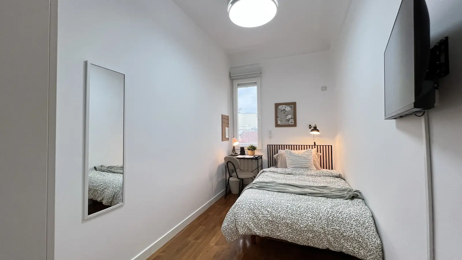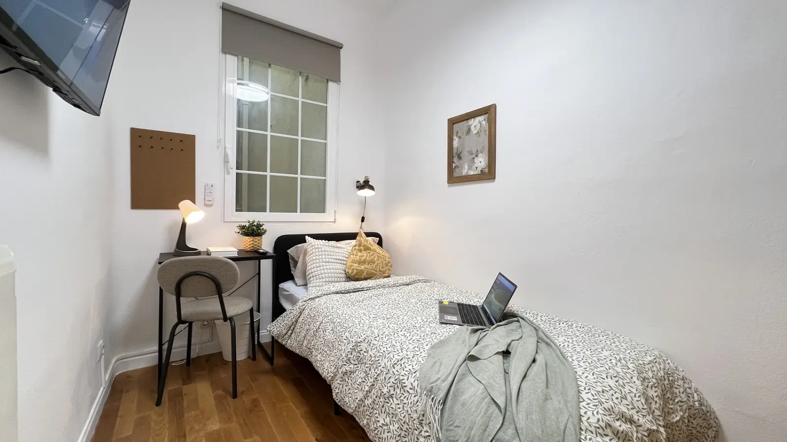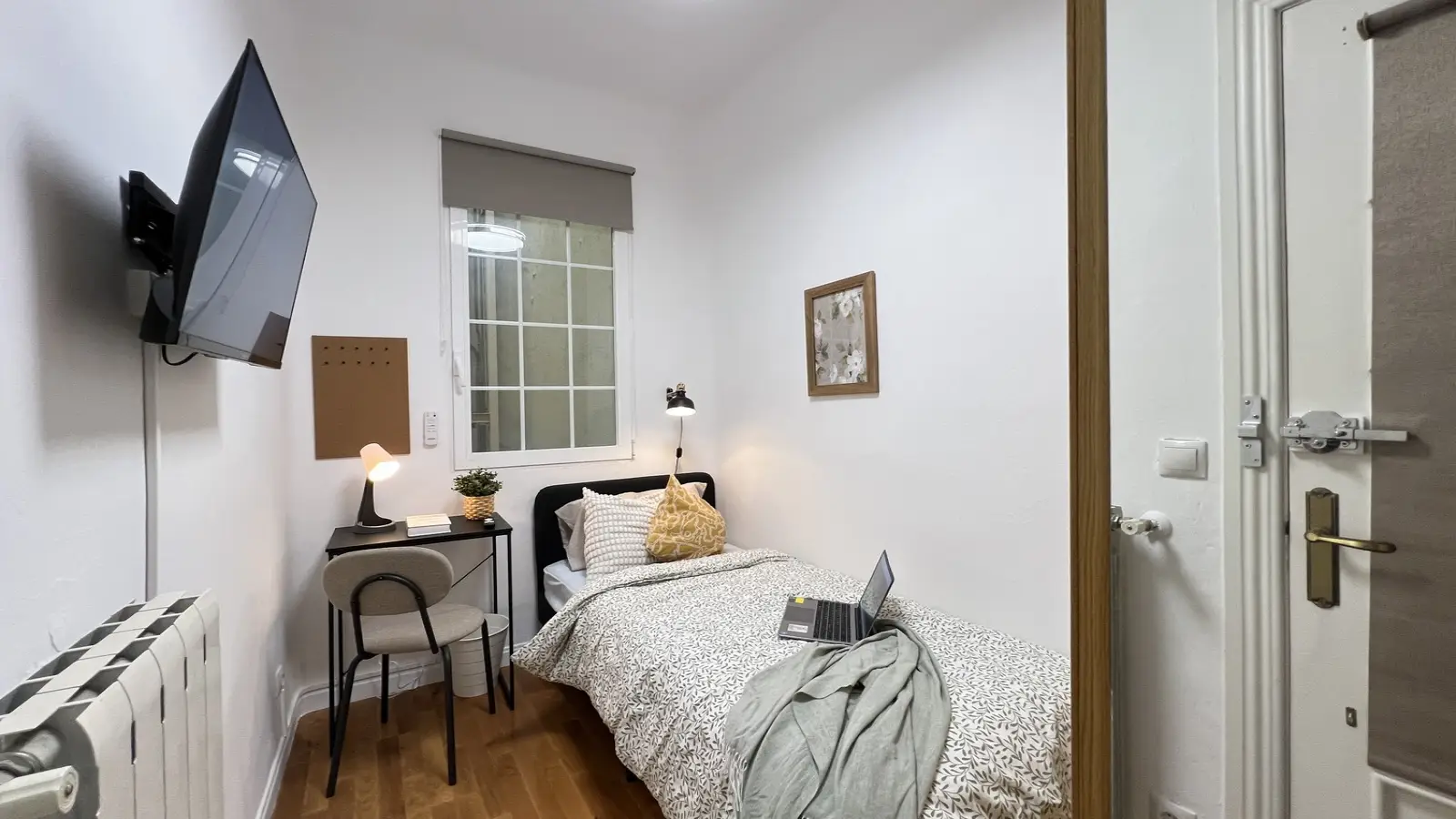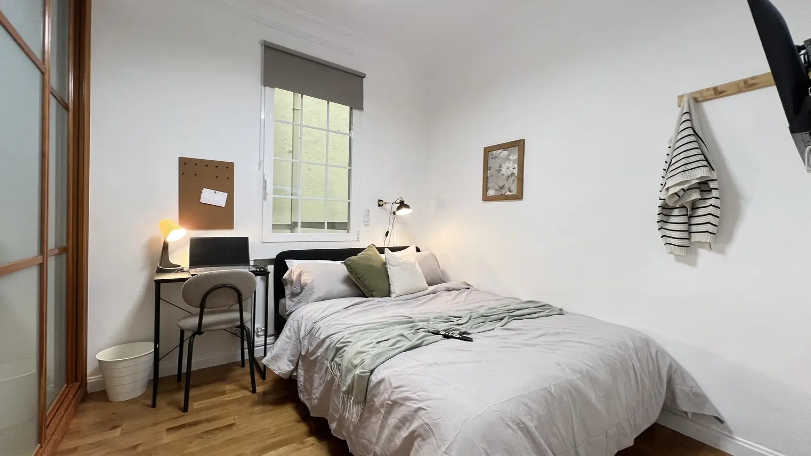 Ten umeblowany pokój w 6-pokojowym mieszkaniu współdzielonym w sercu dzielnicy Sol w Madrycie to fantastyczna propozycja dla osób poszukujących mieszkania w tętniącej życiem okolicy. Apartament wyposażony jest we wspólną pralkę i posiada windę, co zapewnia komfortowe warunki do życia.