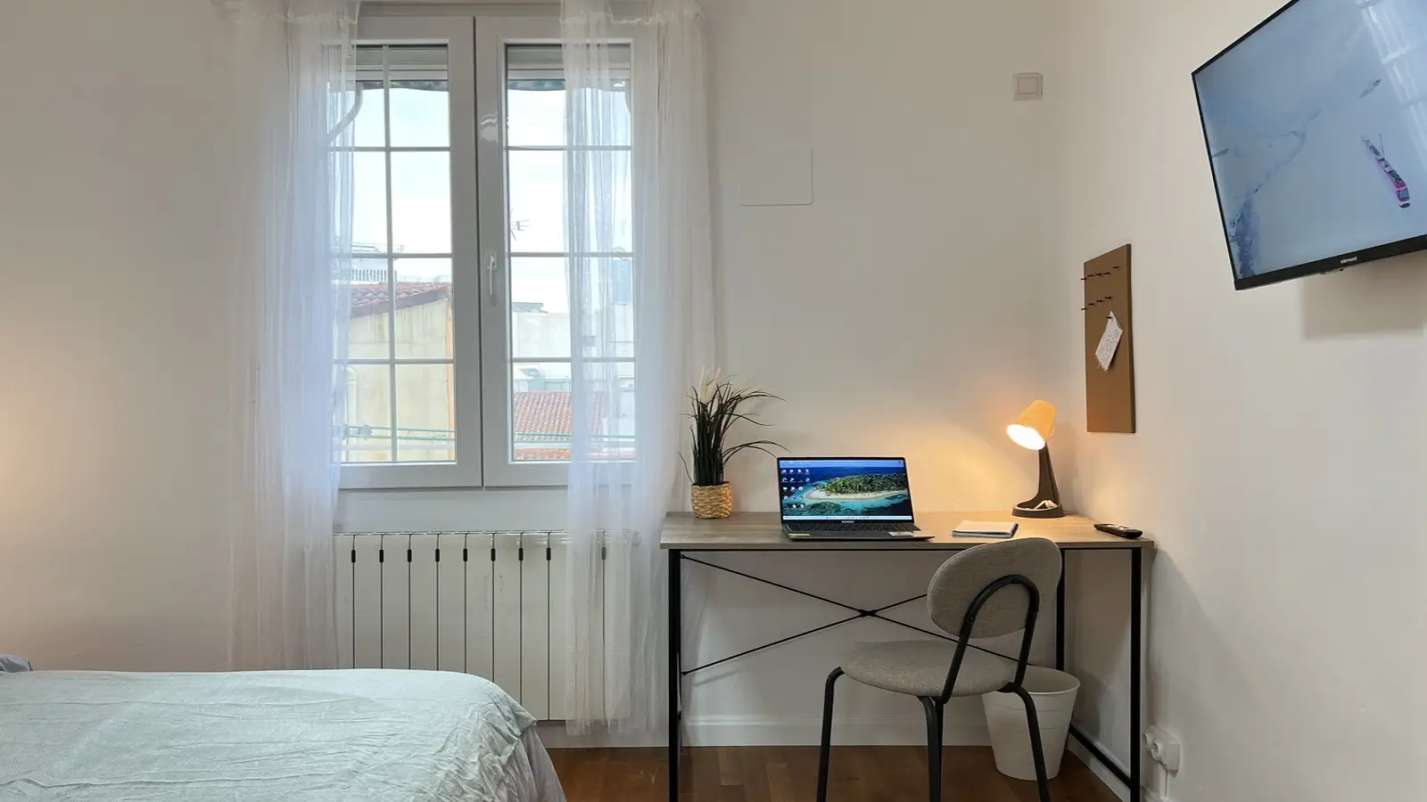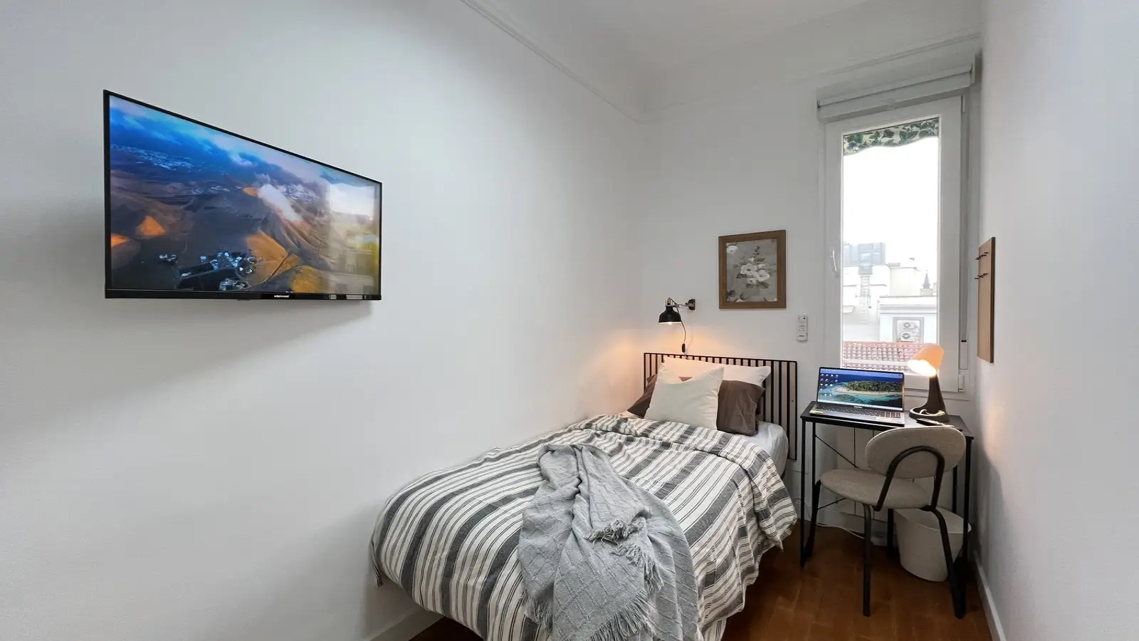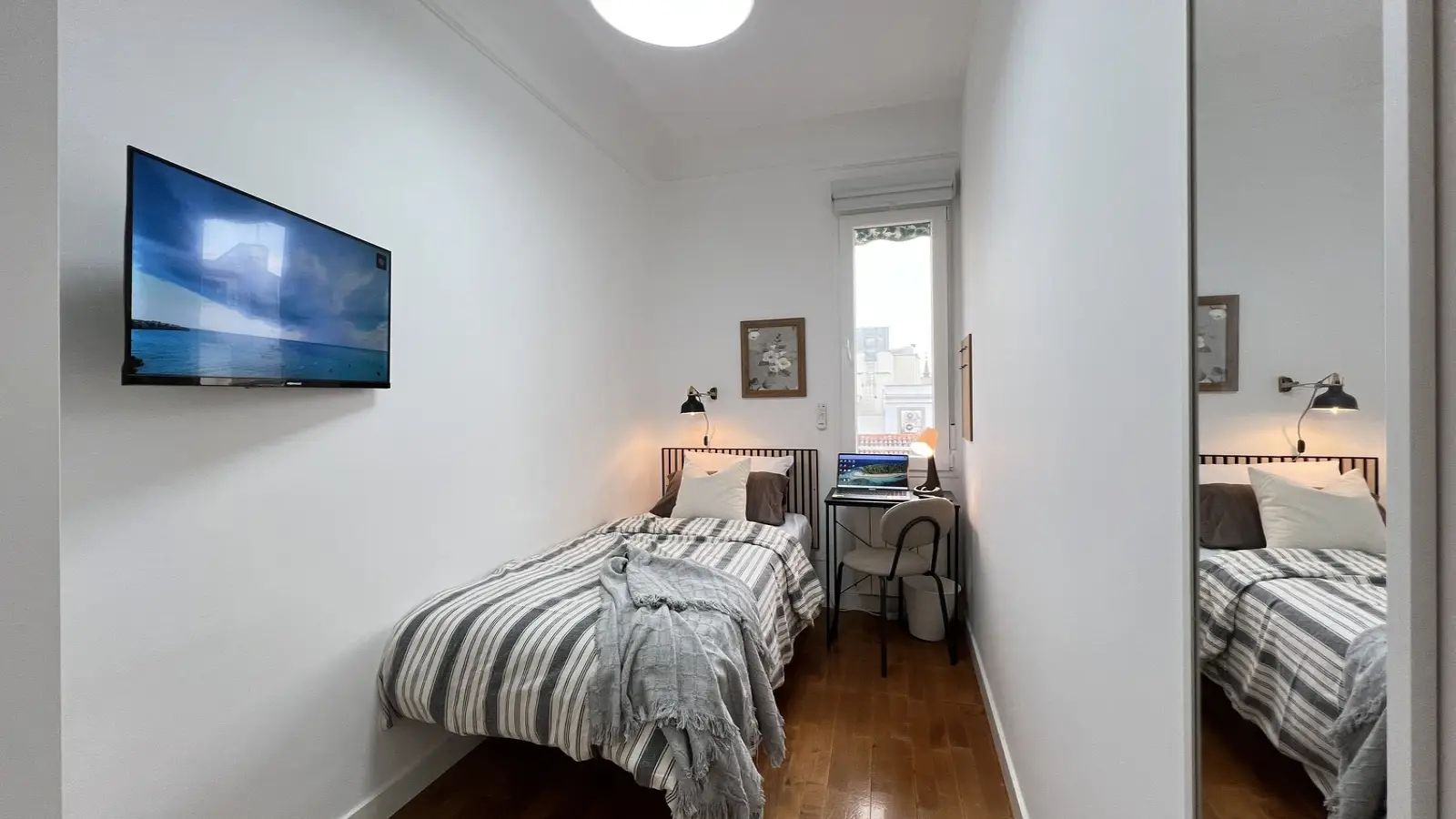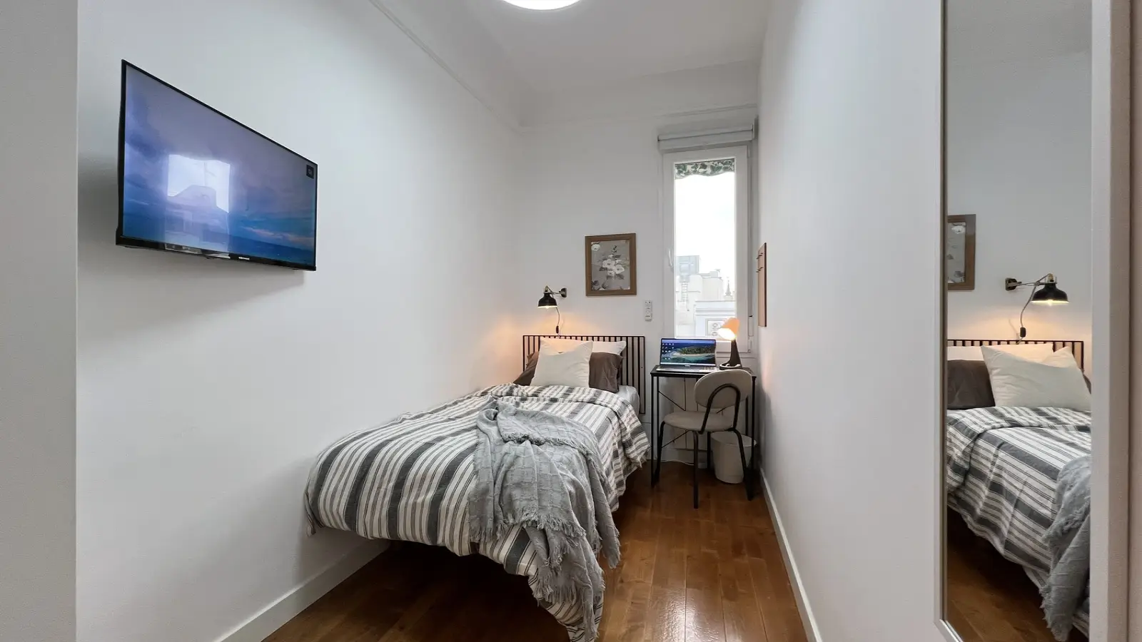 Ten umeblowany pokój w 6-pokojowym mieszkaniu współdzielonym w sercu dzielnicy Sol w Madrycie to fantastyczna propozycja dla osób poszukujących mieszkania w tętniącej życiem okolicy. Apartament wyposażony jest we wspólną pralkę i posiada windę, co zapewnia komfortowe warunki do życia.