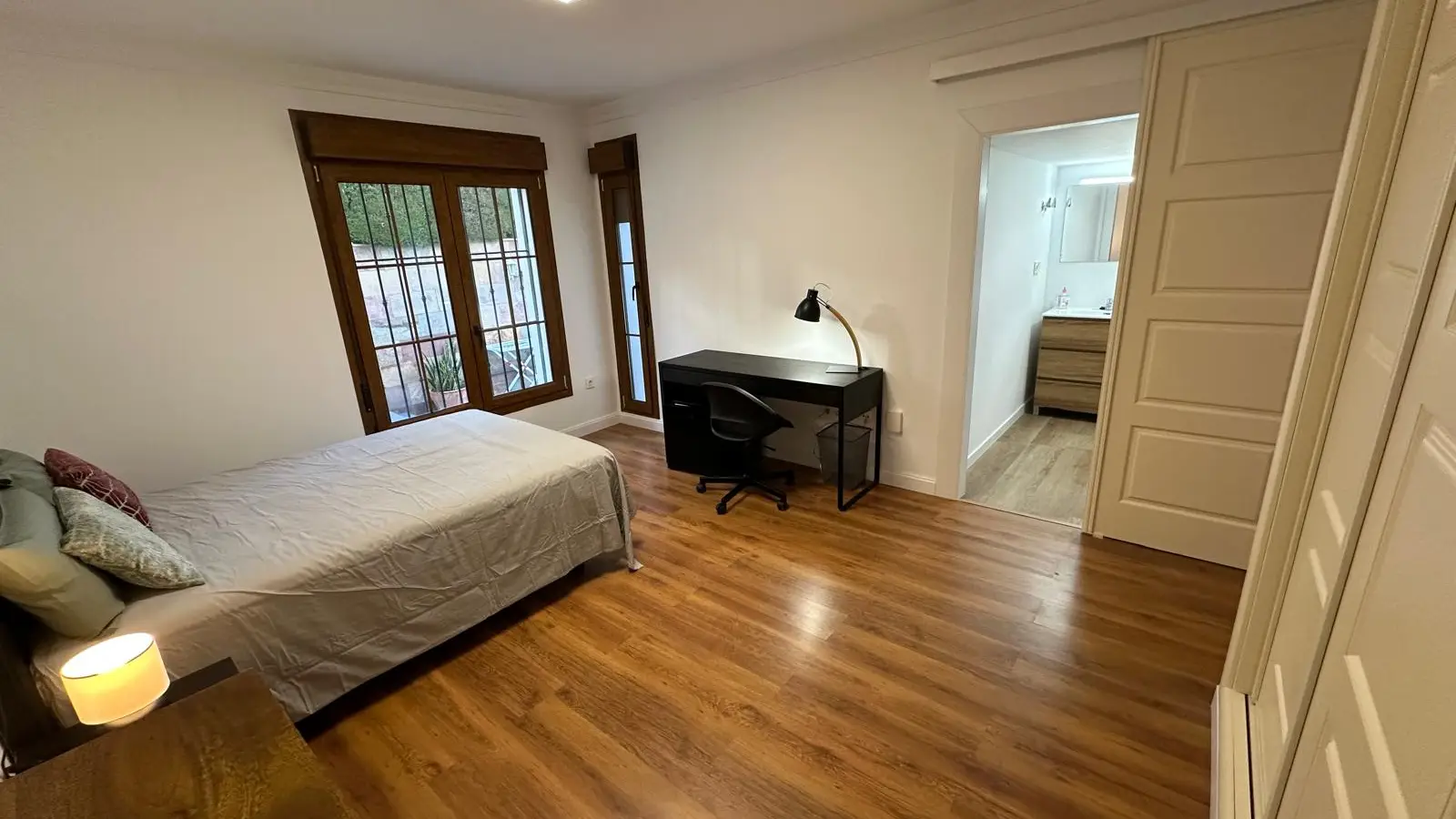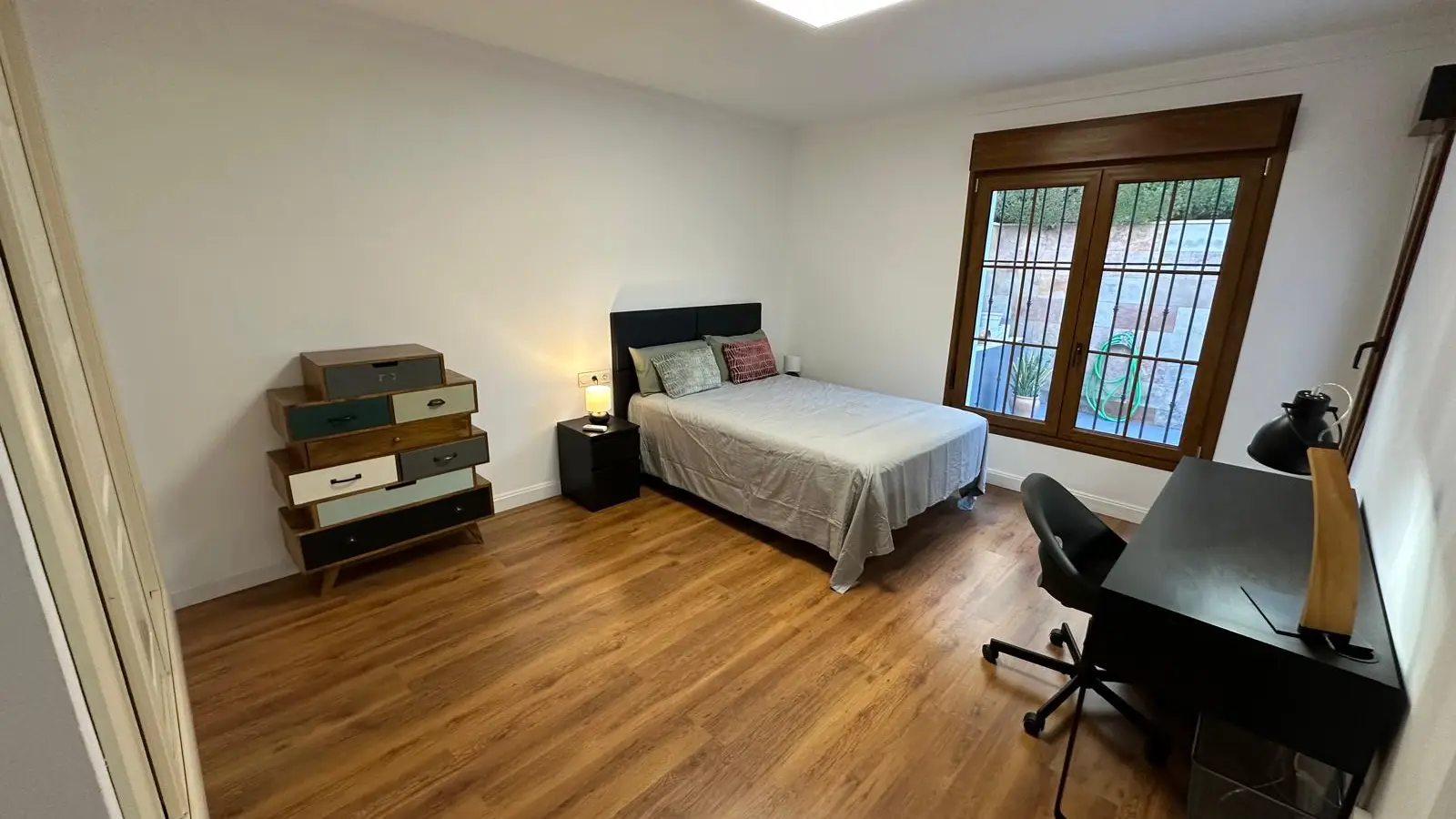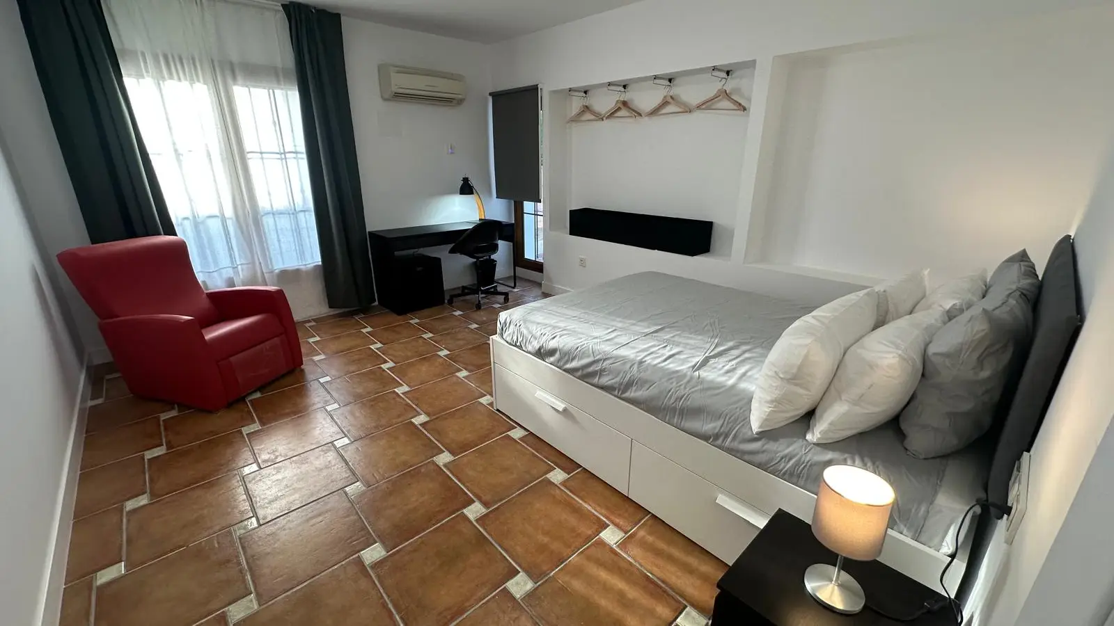 Zamieszkaj w przestronnym pokoju w starannie umeblowanym, dziewięciopokojowym mieszkaniu współdzielonym w Alhaurín de la Torre w Maladze. Apartament oferuje indywidualną klimatyzację, centralne ogrzewanie, w pełni wyposażoną kuchnię z piekarnikiem oraz dostęp do basenu, idealnego na relaks. W apartamencie znajdują się również wszystkie niezbędne udogodnienia, takie jak prąd, woda, gaz i Wi-Fi. Palenie jest dozwolone wewnątrz, co czyni go elastycznym wyborem dla mieszkańców. Warto zaznaczyć, że zwierzęta nie są akceptowane.