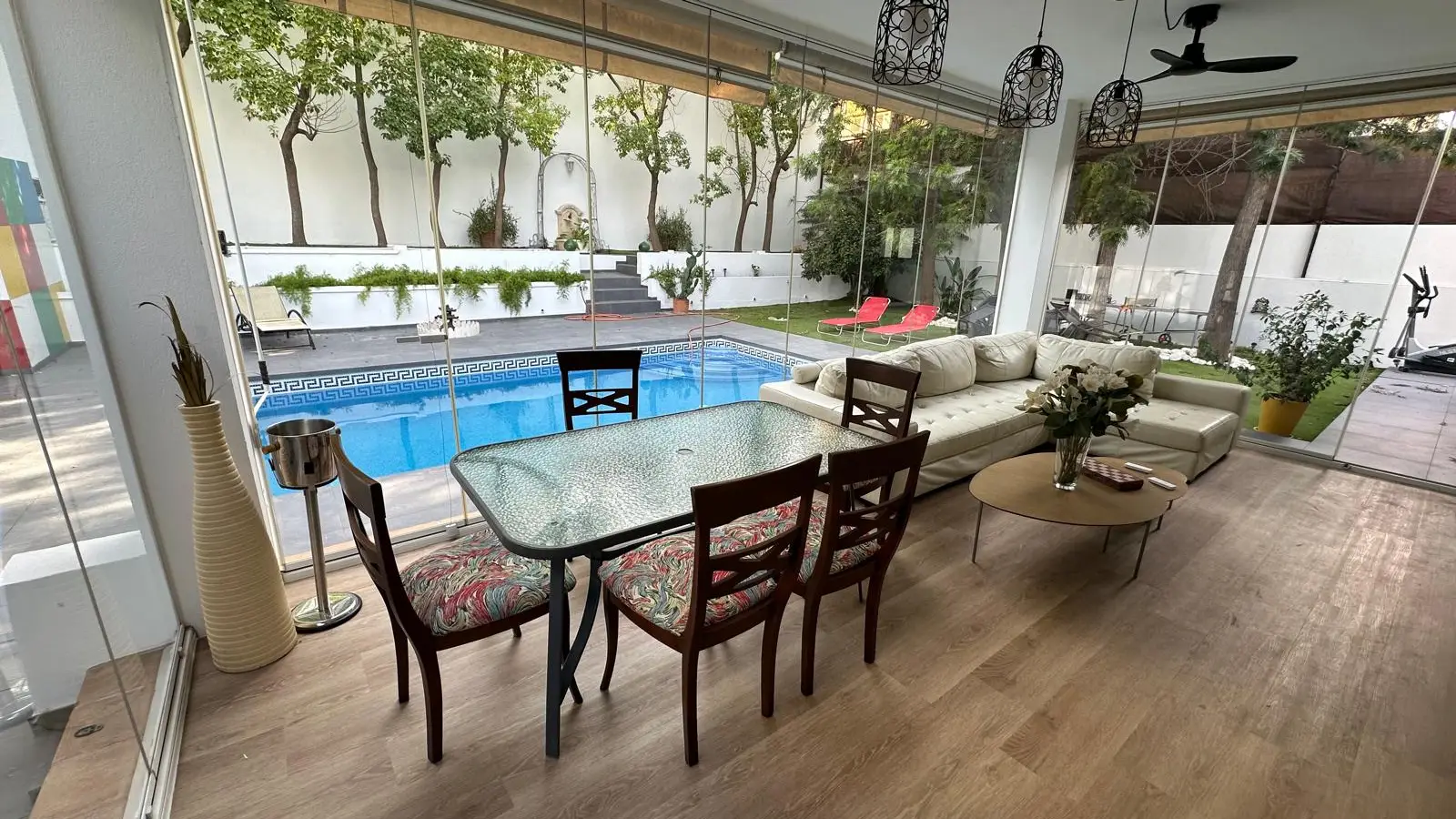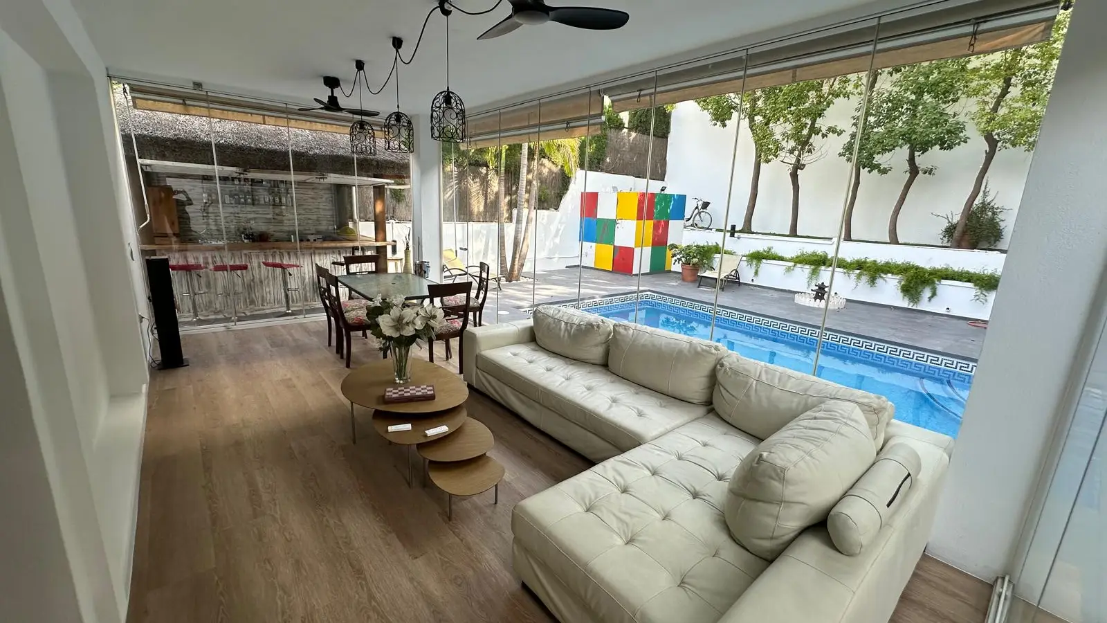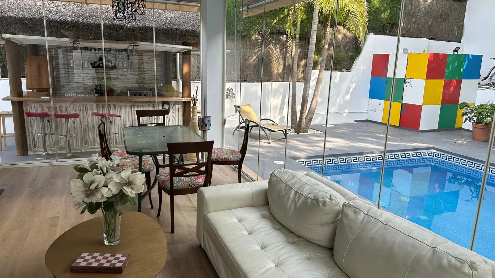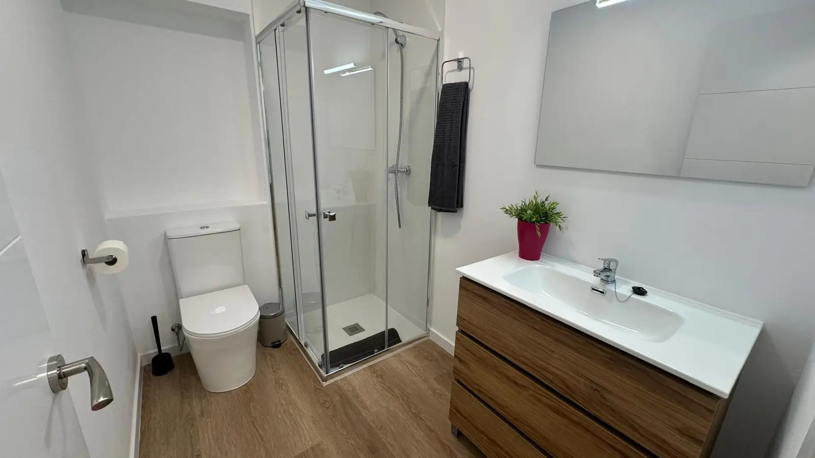 Zamieszkaj w przestronnym pokoju w starannie umeblowanym, dziewięciopokojowym mieszkaniu współdzielonym w Alhaurín de la Torre w Maladze. Apartament oferuje indywidualną klimatyzację, centralne ogrzewanie, w pełni wyposażoną kuchnię z piekarnikiem oraz dostęp do basenu, idealnego na relaks. W apartamencie znajdują się również wszystkie niezbędne udogodnienia, takie jak prąd, woda, gaz i Wi-Fi. Palenie jest dozwolone wewnątrz, co czyni go elastycznym wyborem dla mieszkańców. Warto zaznaczyć, że zwierzęta nie są akceptowane.
