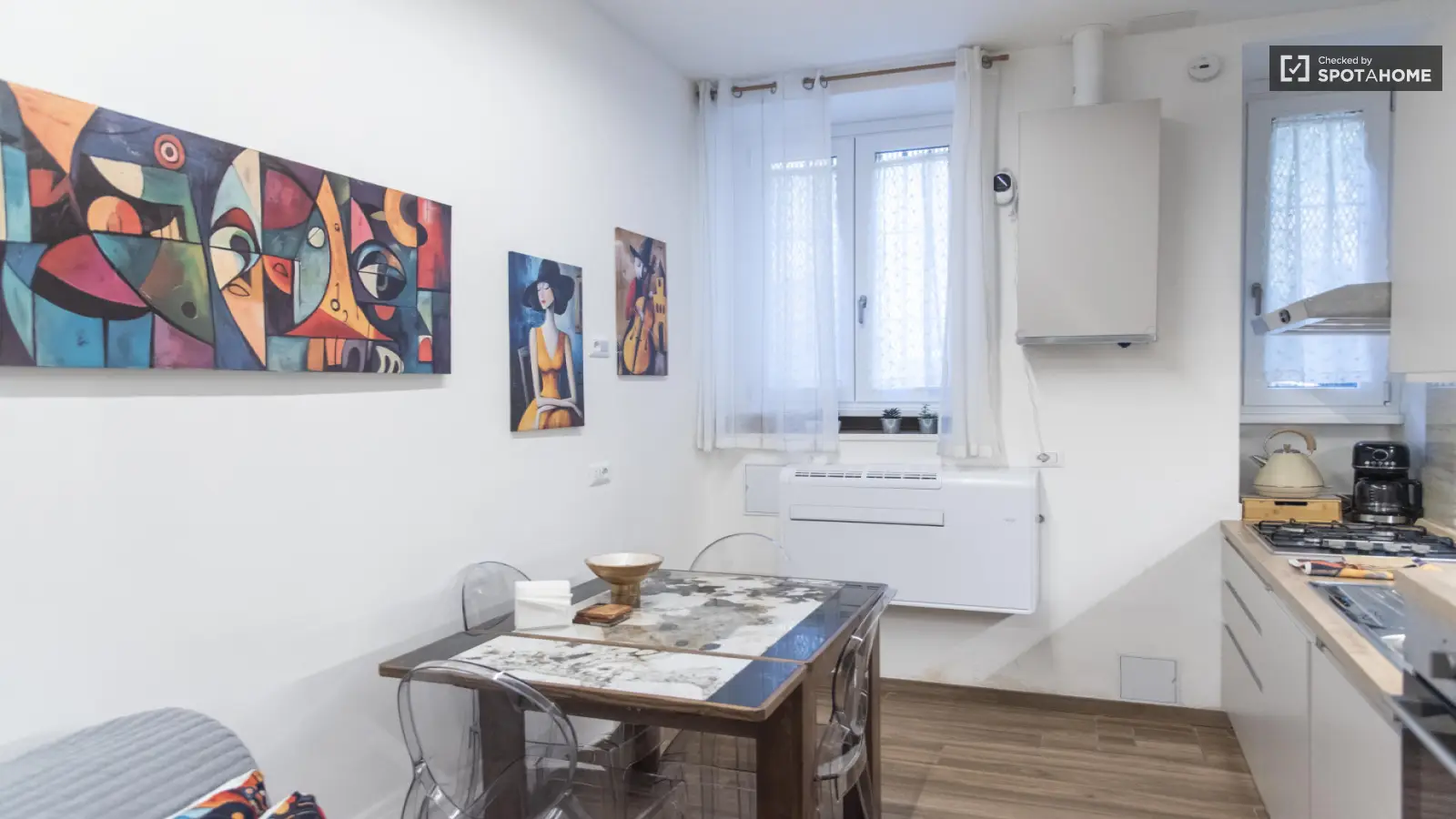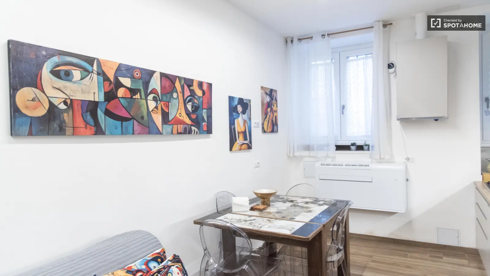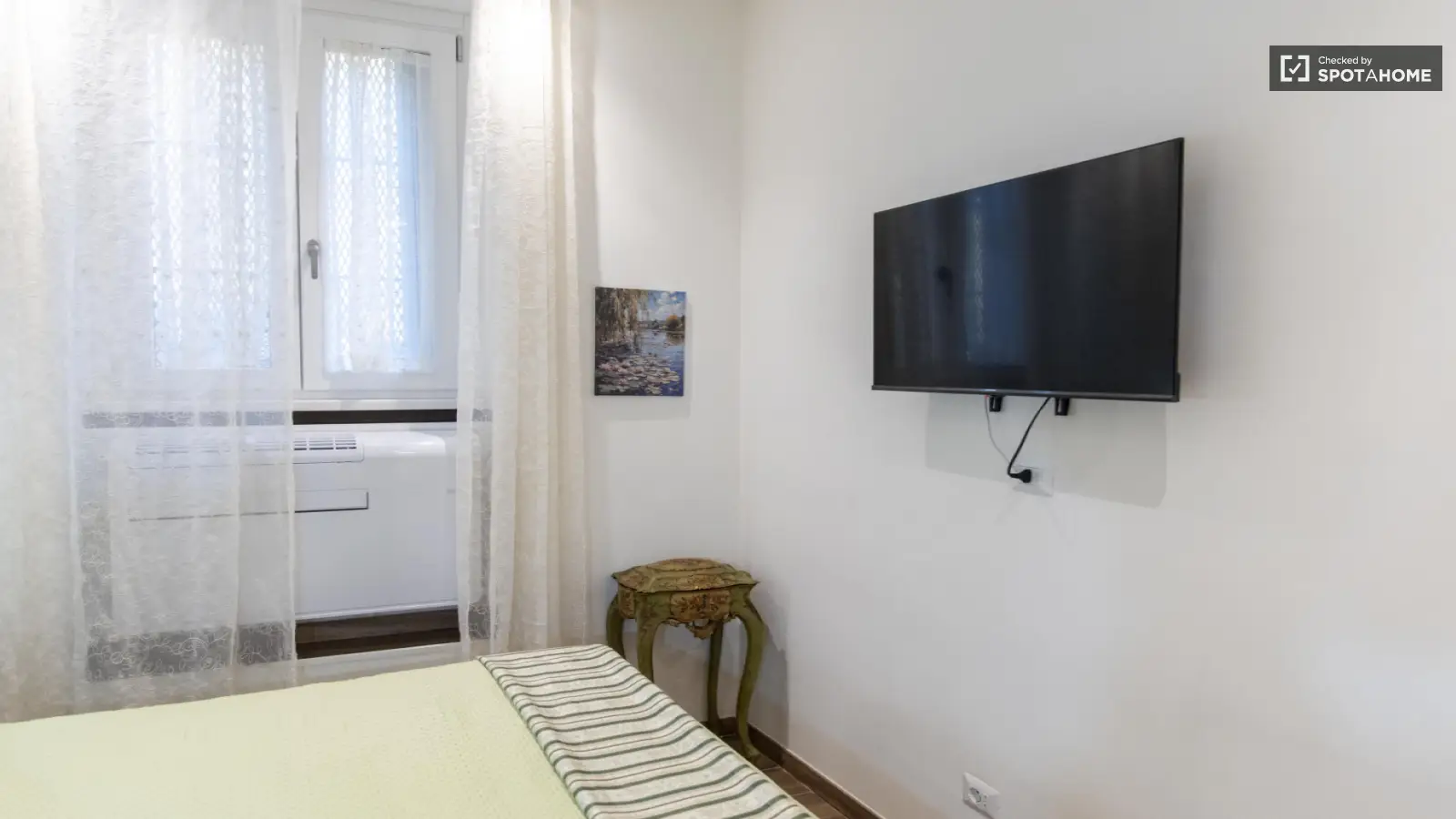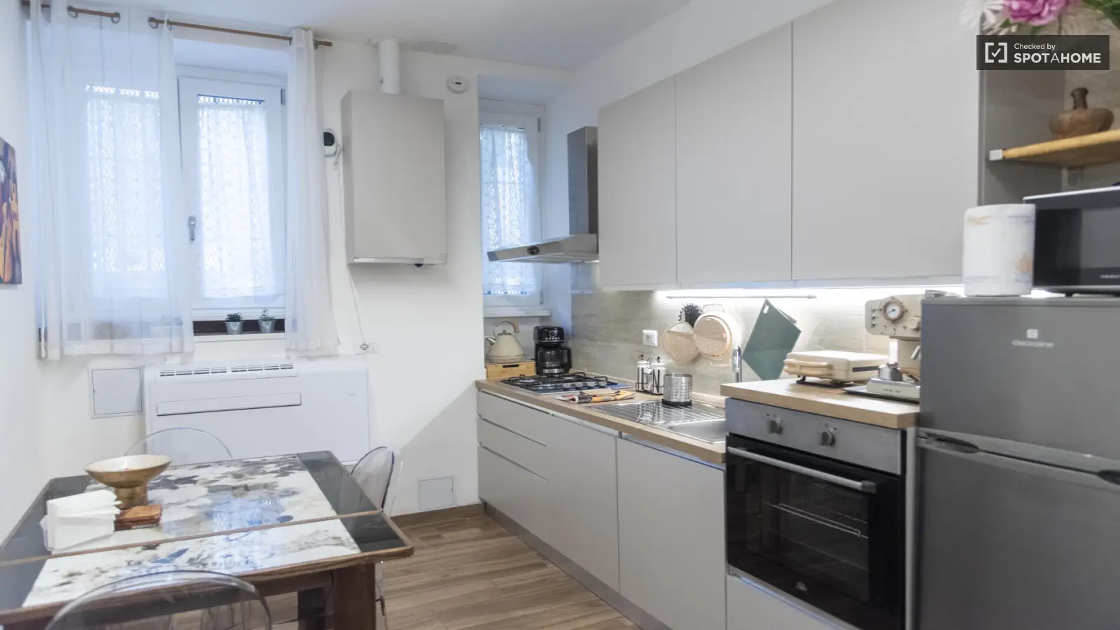 Ten zewnętrzny, umeblowany apartament w tętniącej życiem dzielnicy Pigneto w Rzymie jest dostępny do wynajęcia. Oferuje on oddzielne jednostki klimatyzacji, prywatną pralkę i suszarkę, zmywarkę, piekarnik i telewizor. Apartament jest wyposażony we wszystkie niezbędne udogodnienia zapewniające komfortowy pobyt. Dodatkowo, w cenę wliczone są rachunki za wodę, prąd, gaz i Wi-Fi. Nieruchomość została osobiście sprawdzona przez Spotahome Homechecker, co gwarantuje rzetelny i sprawdzony wybór na Twój kolejny dom. Zwierzęta i palenie są zabronione.