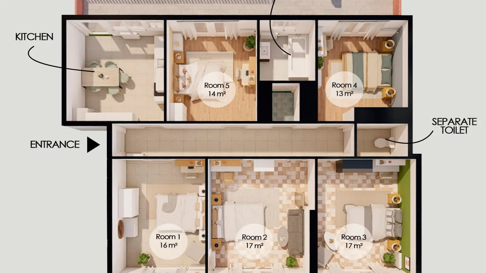 Quarto · 4 colegas de apartamento · 1 banheiros