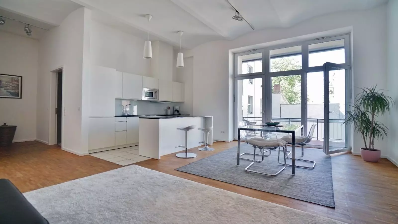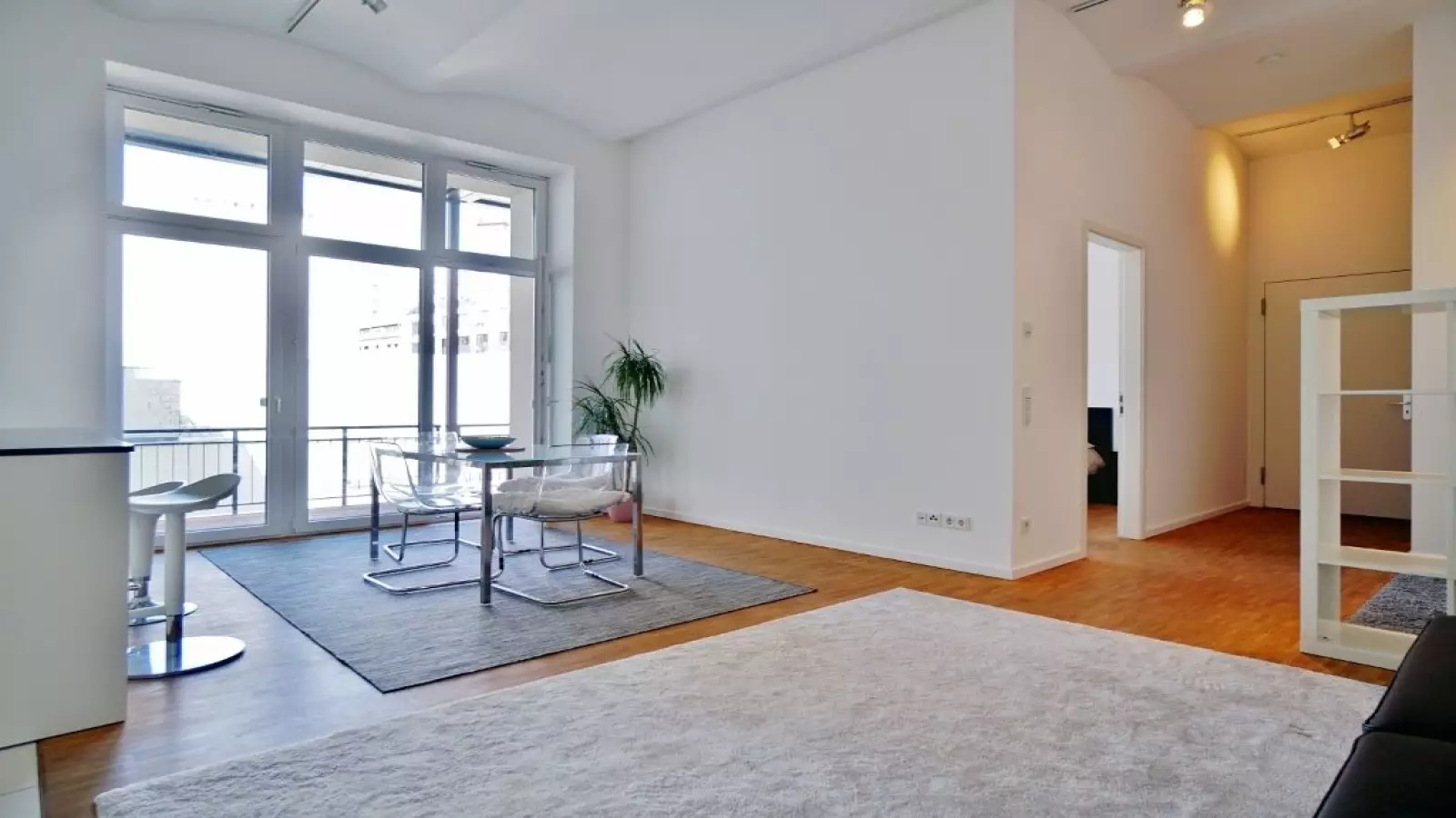 Köpenicker Caddesi'nde kiralık 1 yatak odalı mobilyalı daire. Mülkiyet balkonludur.