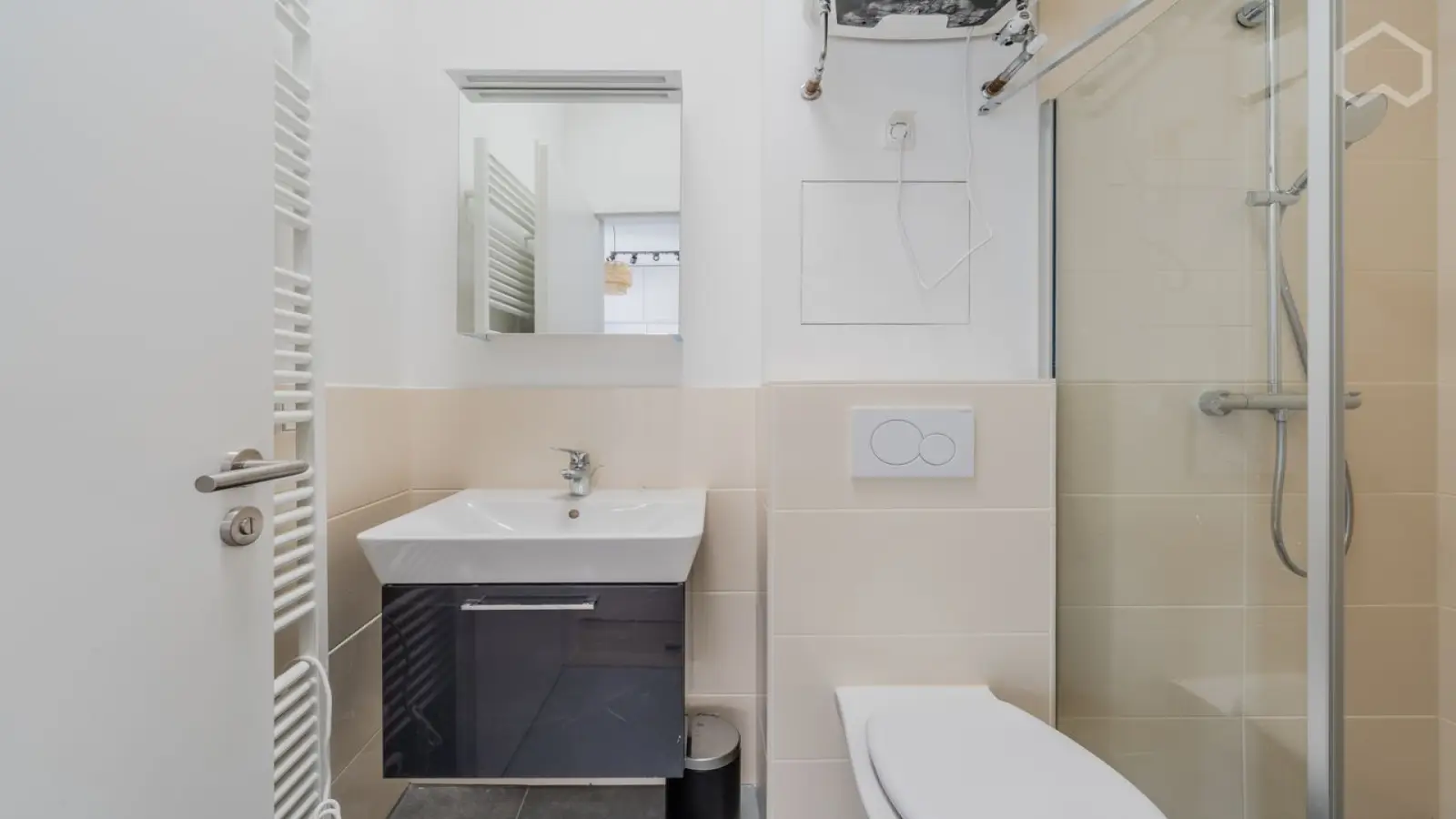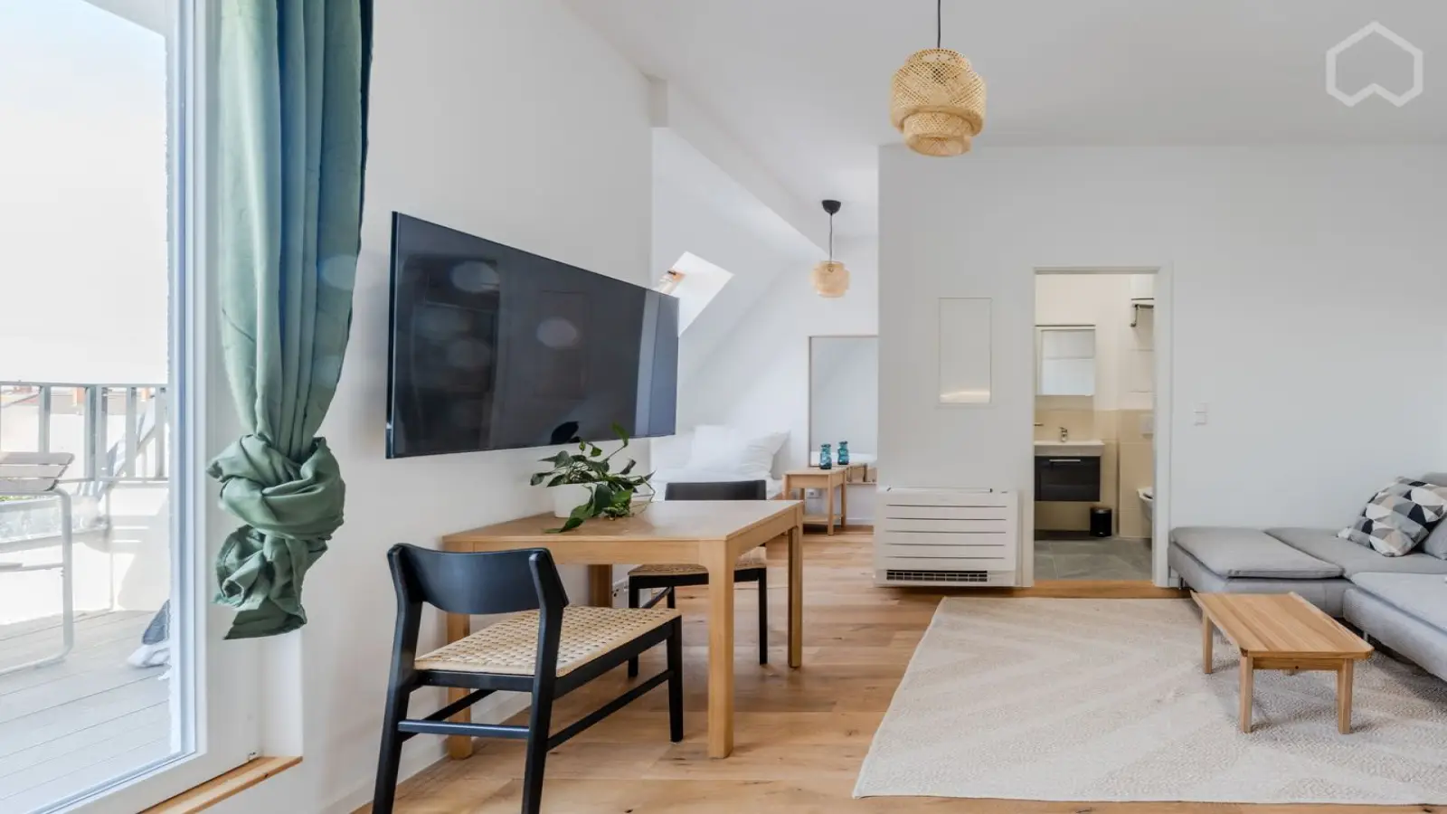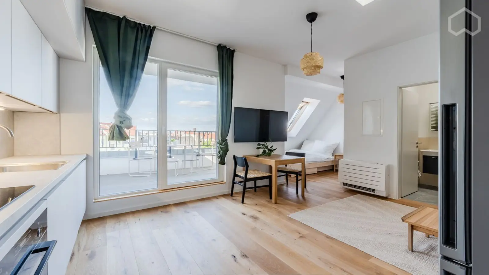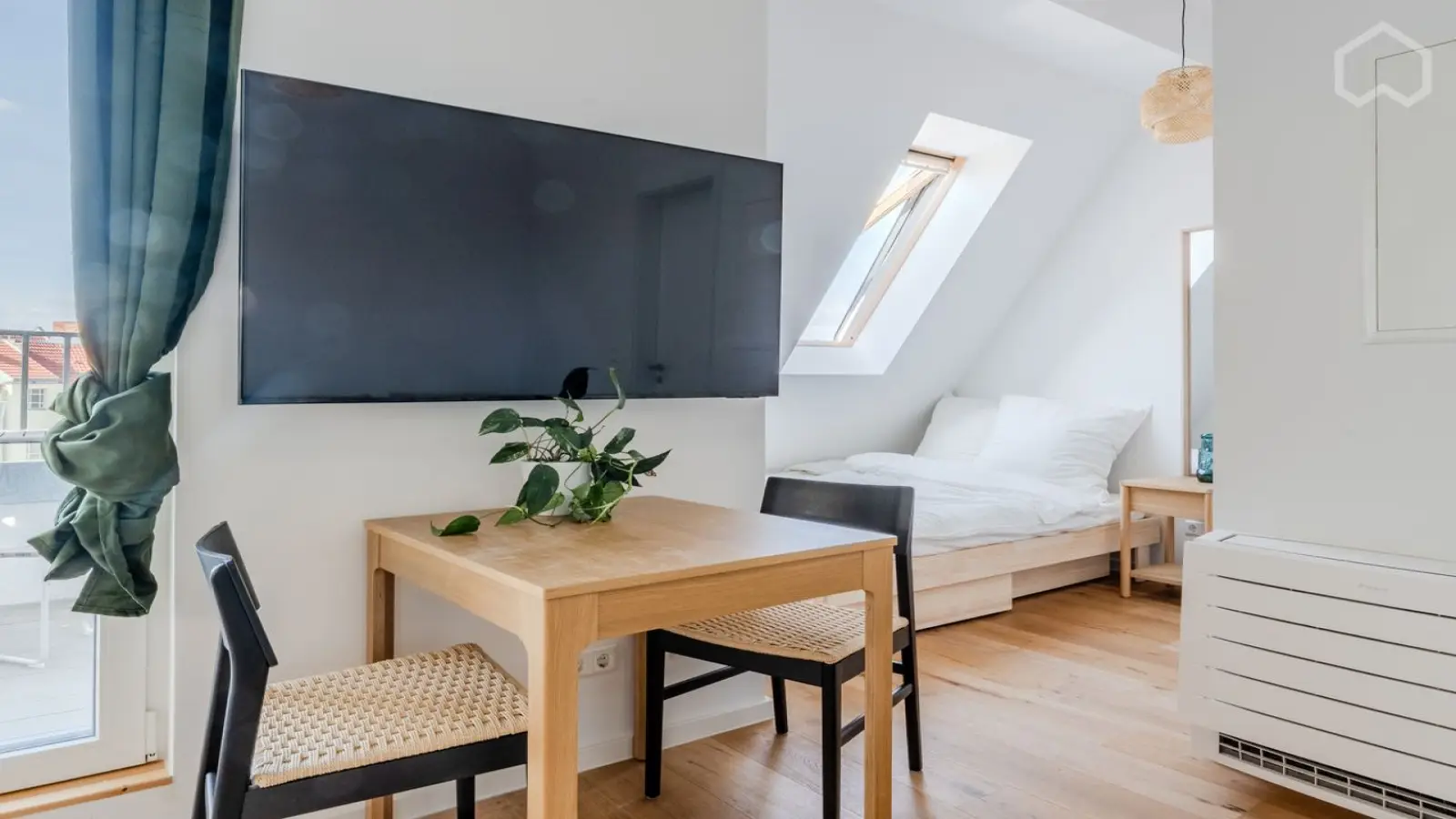 Bu tam donanımlı stüdyo daire Berlin'de kiralanabilir. Dairede klima, elektrikli ısıtma sistemi ve balkon veya teras gibi bireysel birimler bulunmaktadır. Bulaşık makinesi ve fırın içeren donanımlı bir mutfağın yanı sıra ortak bir çamaşır makinesi ve çamaşır kurutma makinesi de mevcuttur. Daha fazla konfor için elektrik, gaz, su ve Wi-Fi dahil tüm faturalar fiyata dahildir. Sigara içilmesine ve evcil hayvanlara izin verilmediğini ve periyodik temizliğin kiracının sorumluluğunda olduğunu unutmayın. Binada asansör veya otopark bulunmamaktadır ve havuza erişim mümkün değildir.