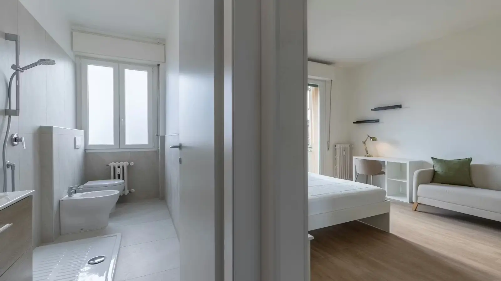 Novoli-Firenze Nova'da, öğrenciler veya profesyoneller için kiralık, paylaşımlı 4 yatak odalı bir dairede oda. (Florence, İtalya)
