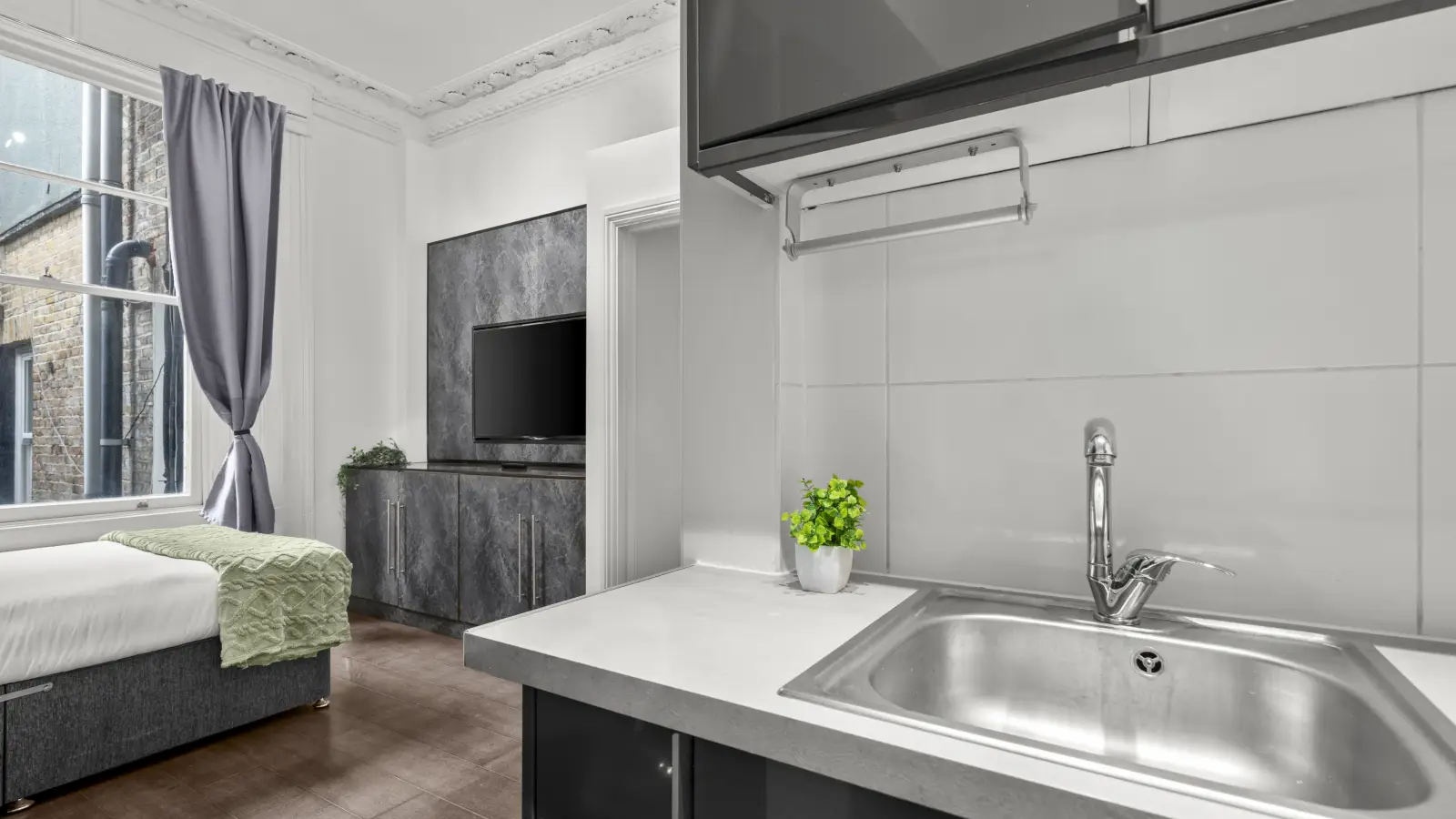 Londra'nın gözde semtlerinden Lancaster Gate'te bulunan bu modern stüdyoya hoş geldiniz. Tamamen mobilyalı bu stüdyo, merkezi ısıtma ve doğal gazlı su ısıtma sistemiyle donatılmış konforlu bir yaşam alanı sunmaktadır. Mutfak, rahat yemek pişirmenizi sağlayan bir fırın da dahil olmak üzere iyi donanımlıdır. Bu mülkte sigara içmek ve evcil hayvanlara izin verilmemektedir. Spotahome, kalite standartlarını teyit etmek için bu mülkü bizzat kontrol etmiştir.