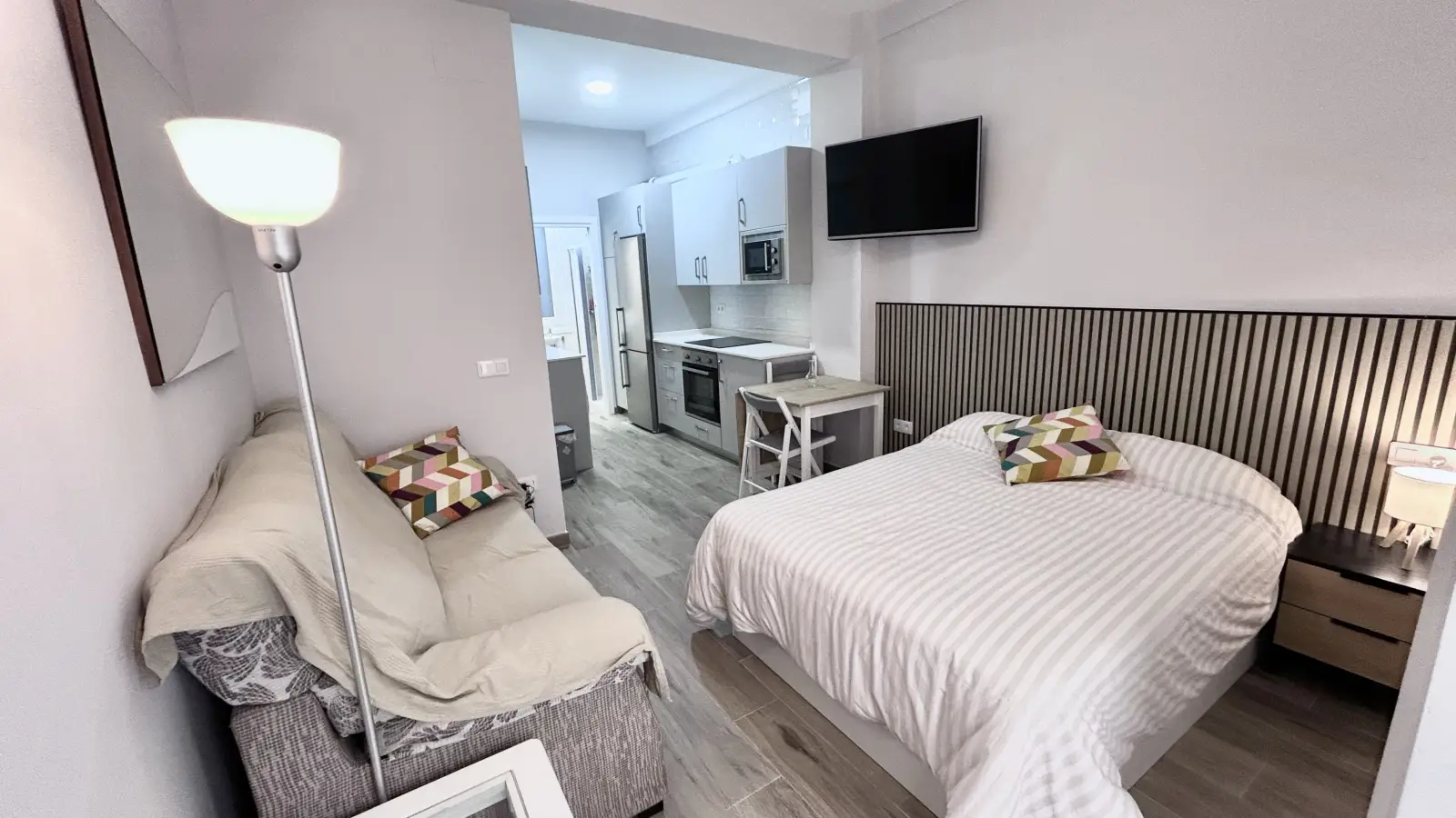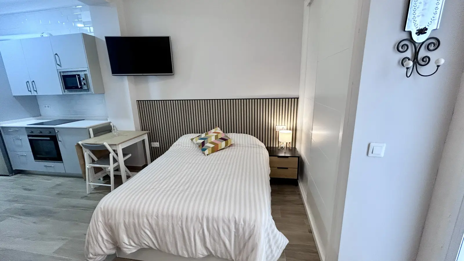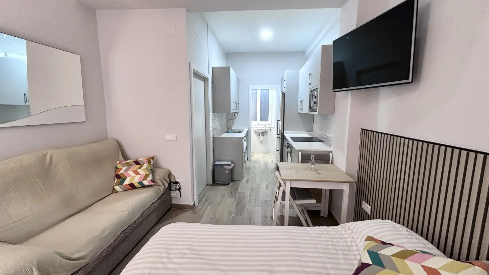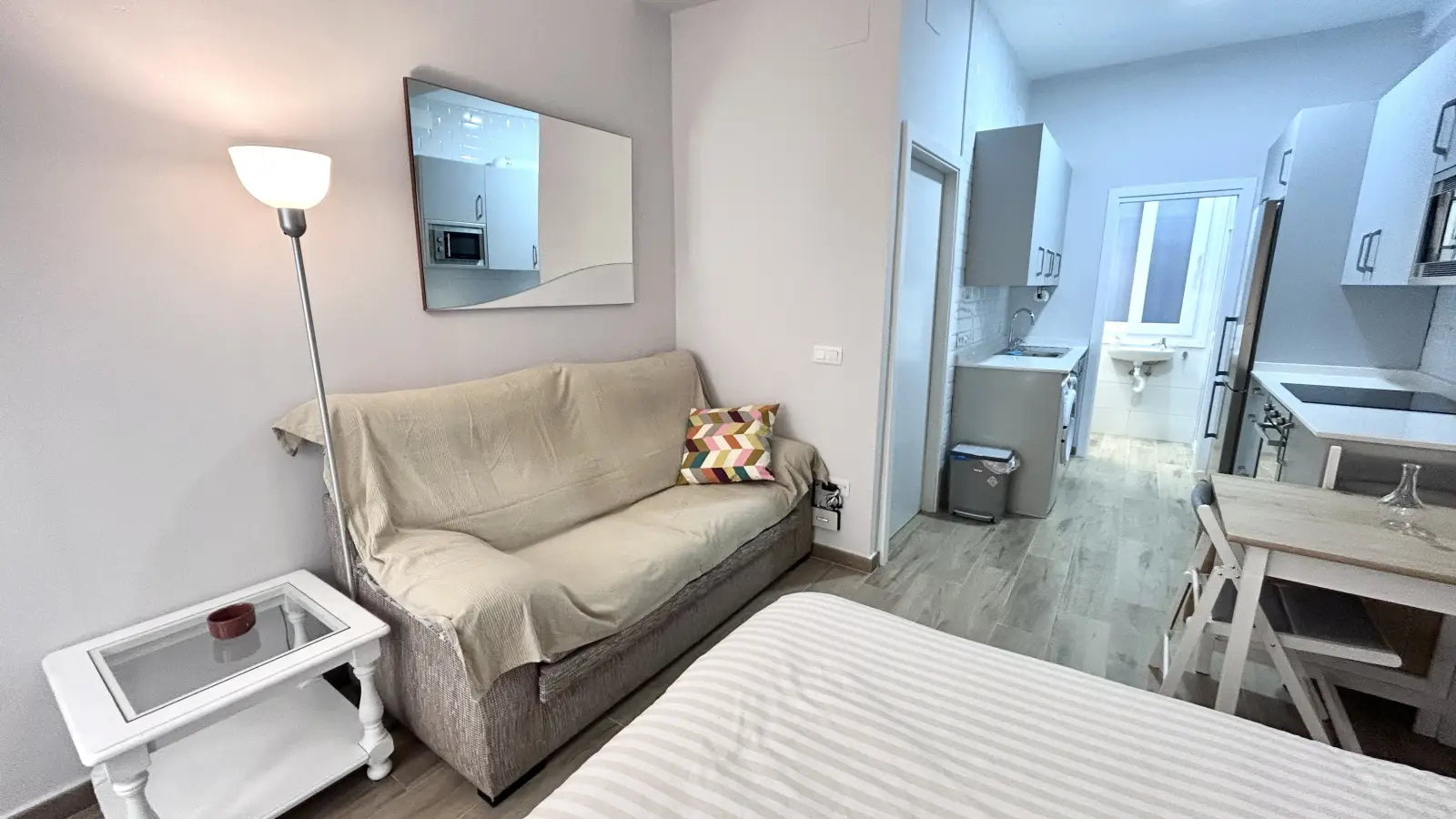 Sevilla'nın Los Remedios bölgesinde konforlu bir stüdyo daire mi arıyorsunuz? Bu mobilyalı stüdyo daire, bireysel klima üniteleri, bulaşık makinesi ve fırın içeren donanımlı mutfak ve ortak çamaşır makinesine erişim gibi olanaklarla profesyonelleri ve öğrencileri ağırlamaktadır. Spotahome tarafından bizzat doğrulanmış olup, ev sahibinin güvenilirliğini garanti etmektedir.